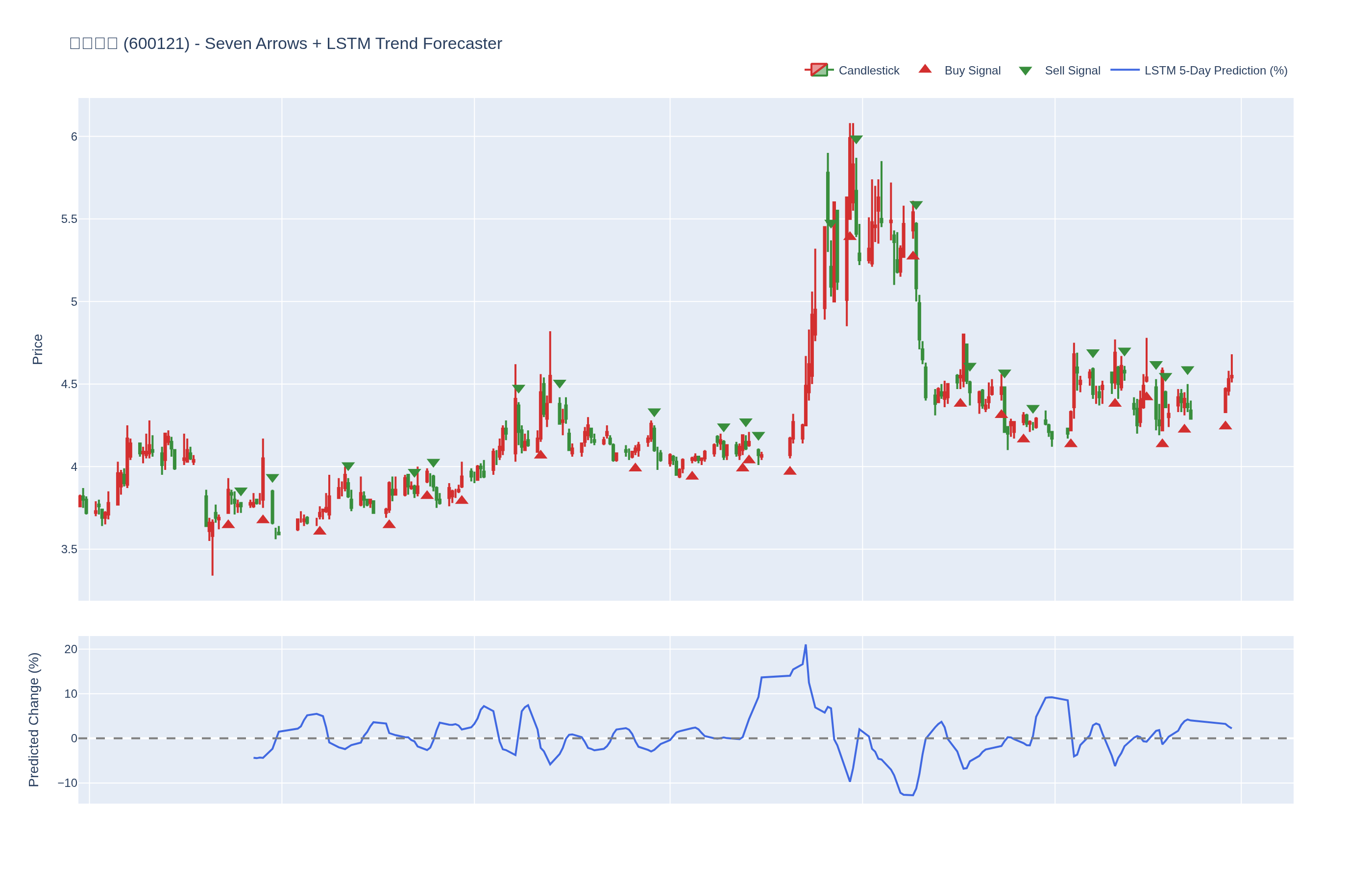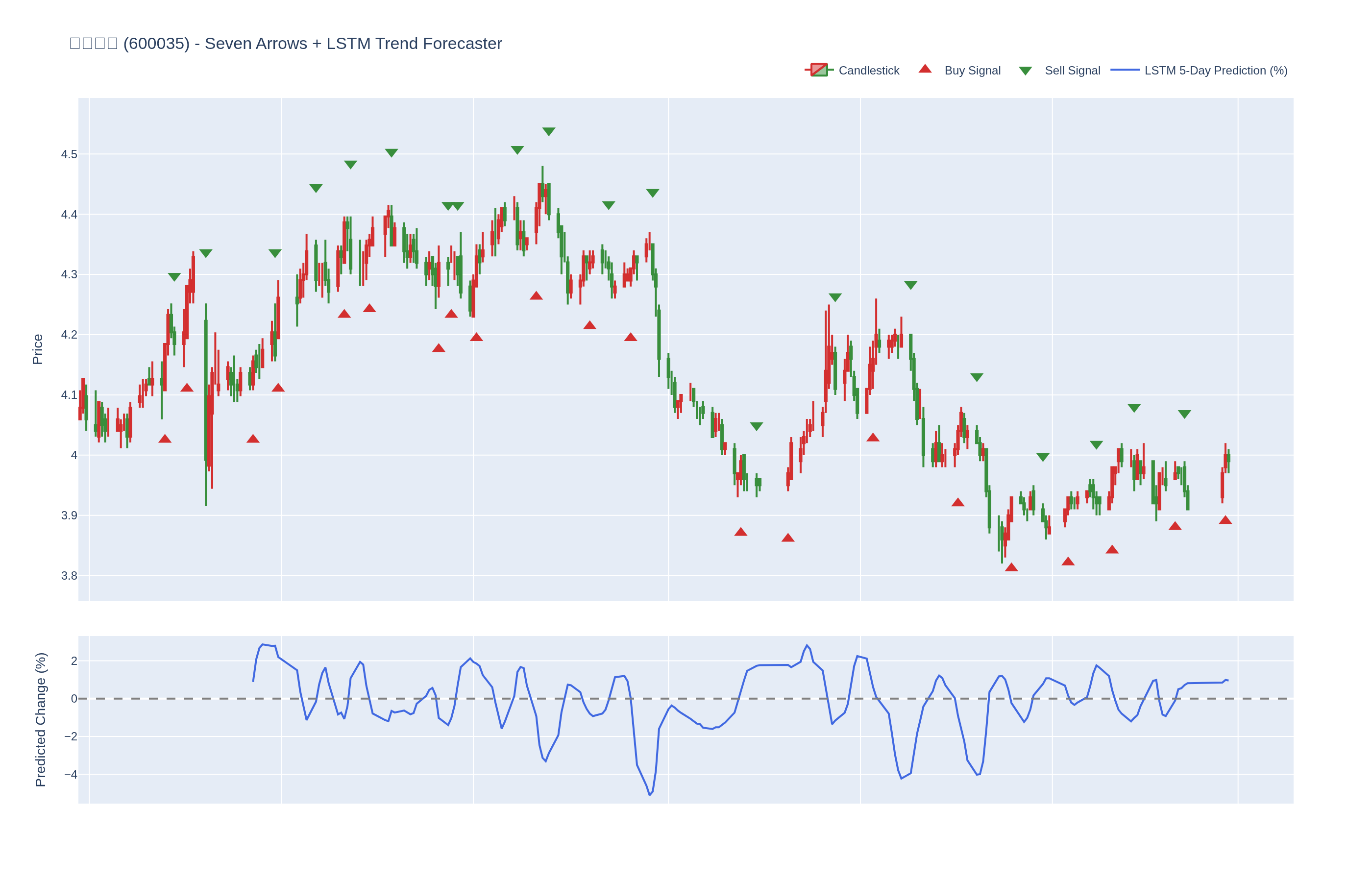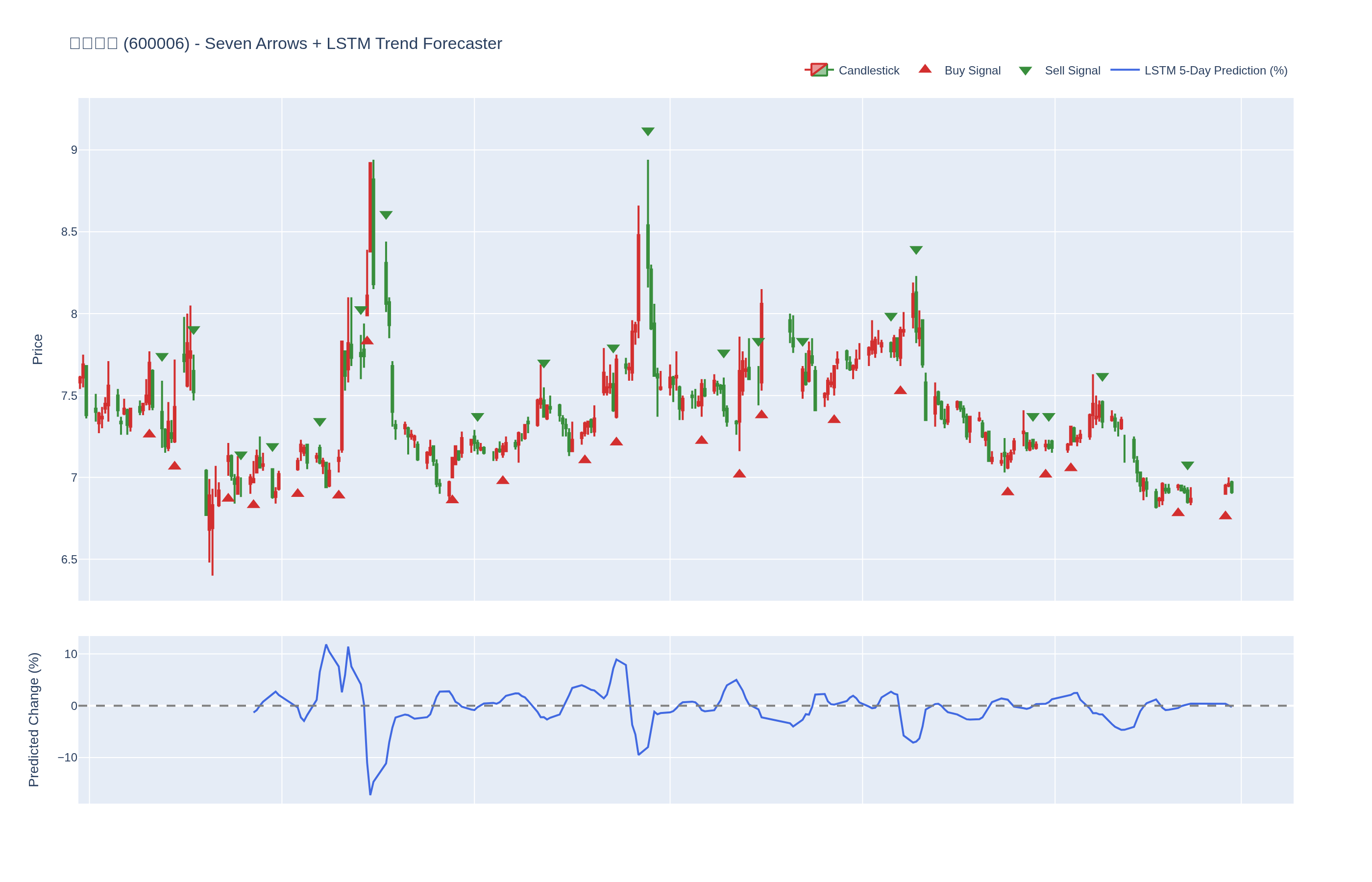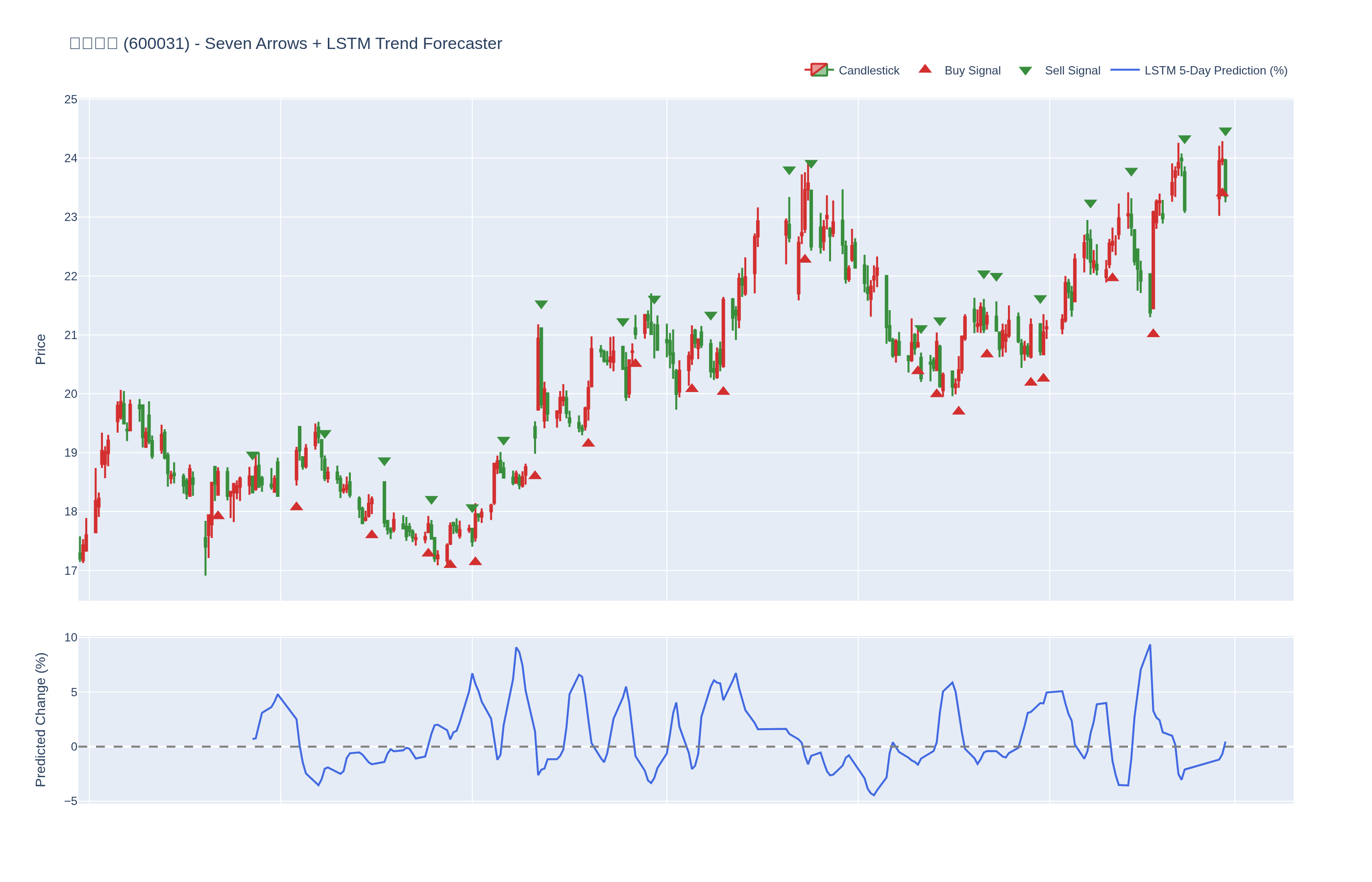 买入 (Buy): ≥6 向上箭头 且 LSTM 预测未来价格 上涨 (>0%)