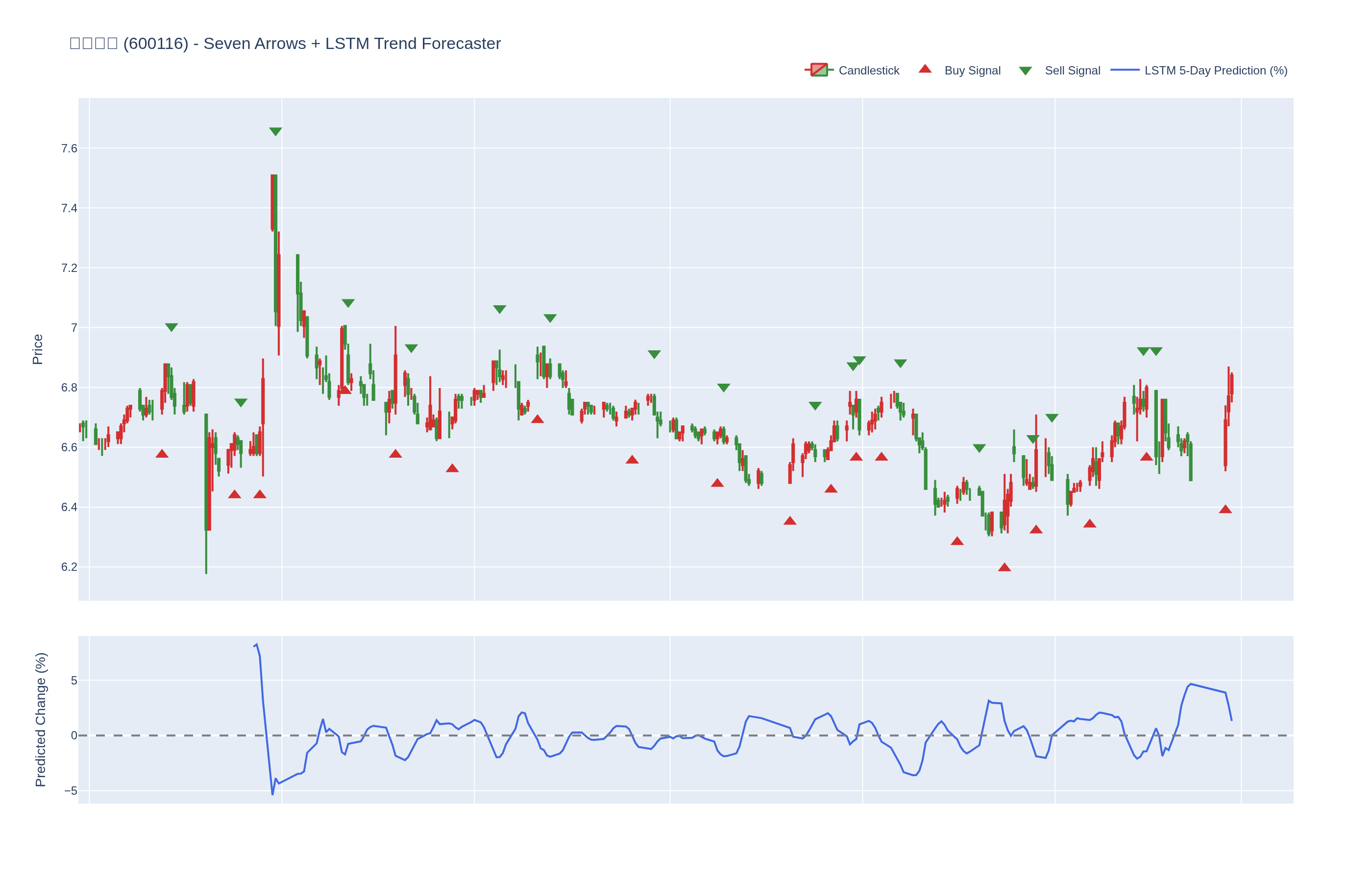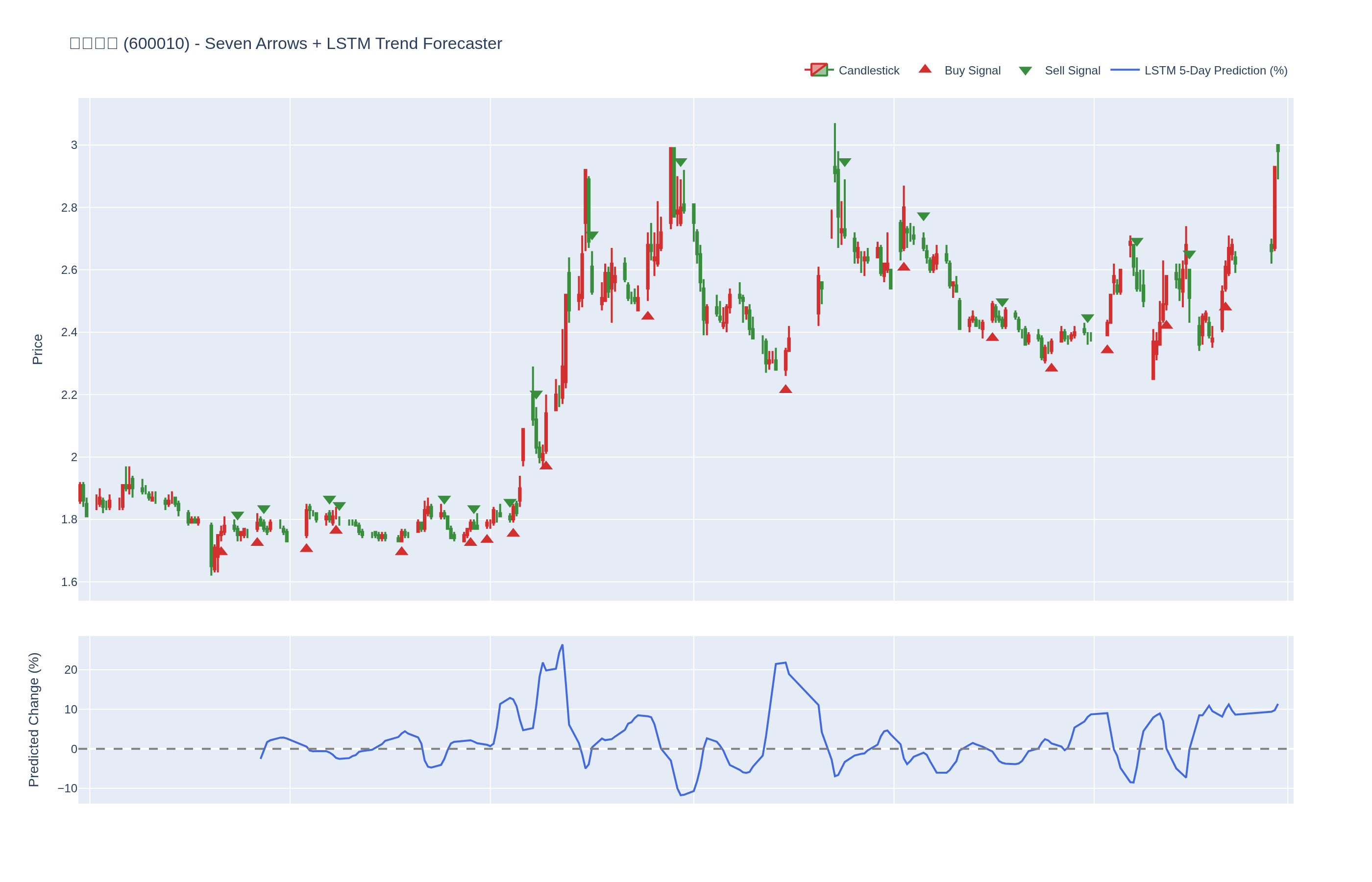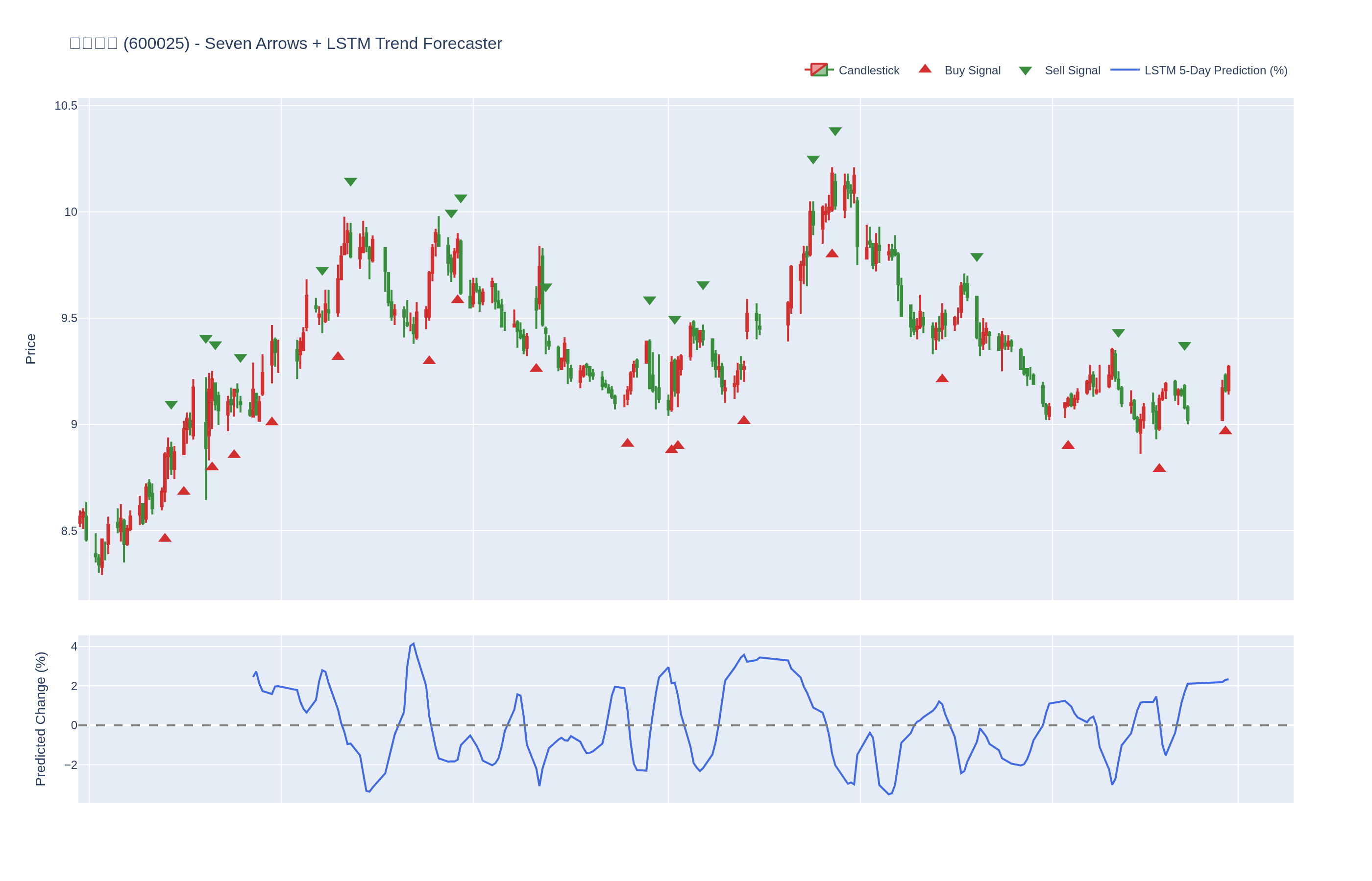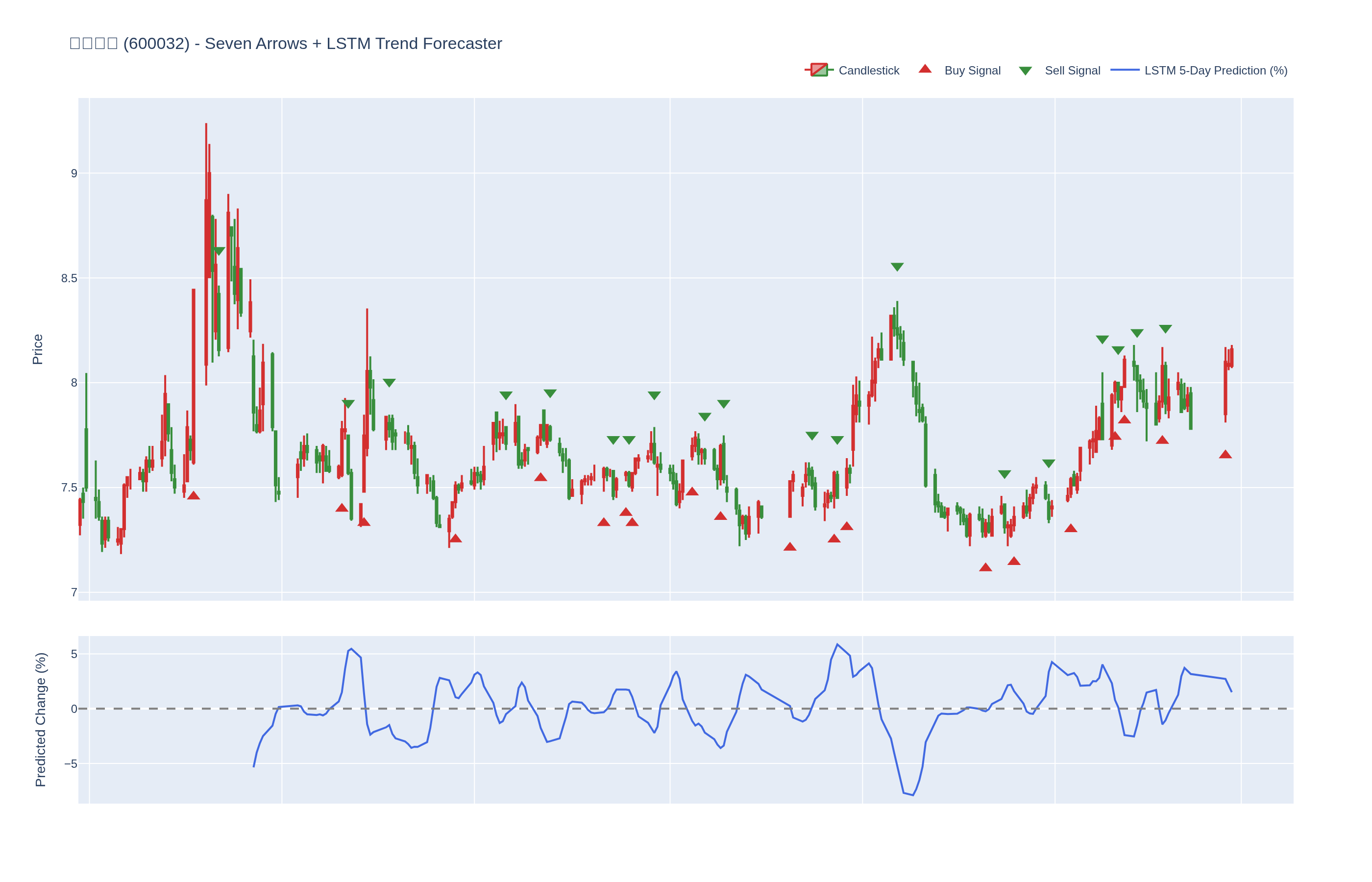买入 (Buy): ≥6 向上箭头 且 LSTM 预测未来价格 上涨 (>0%)