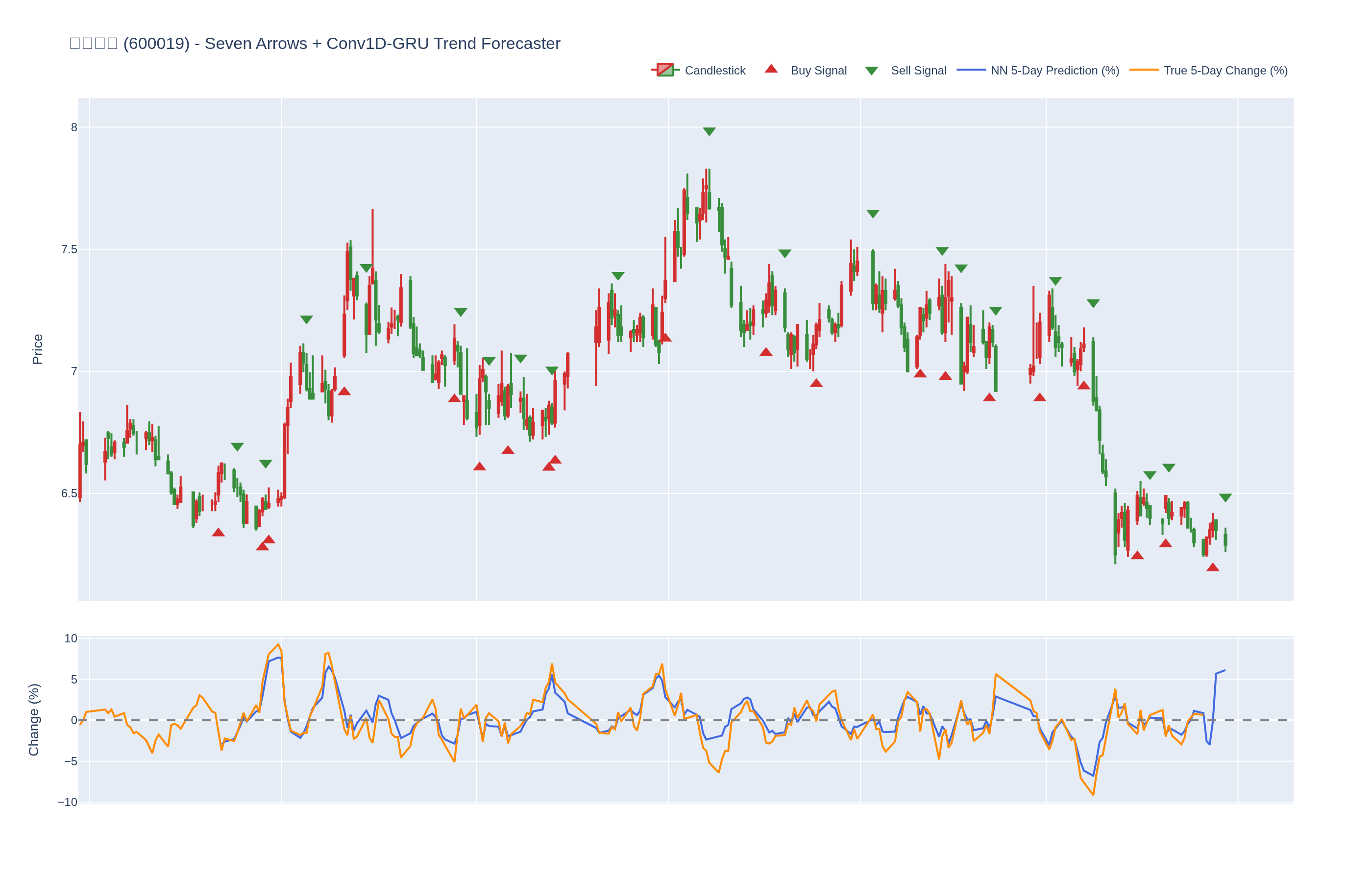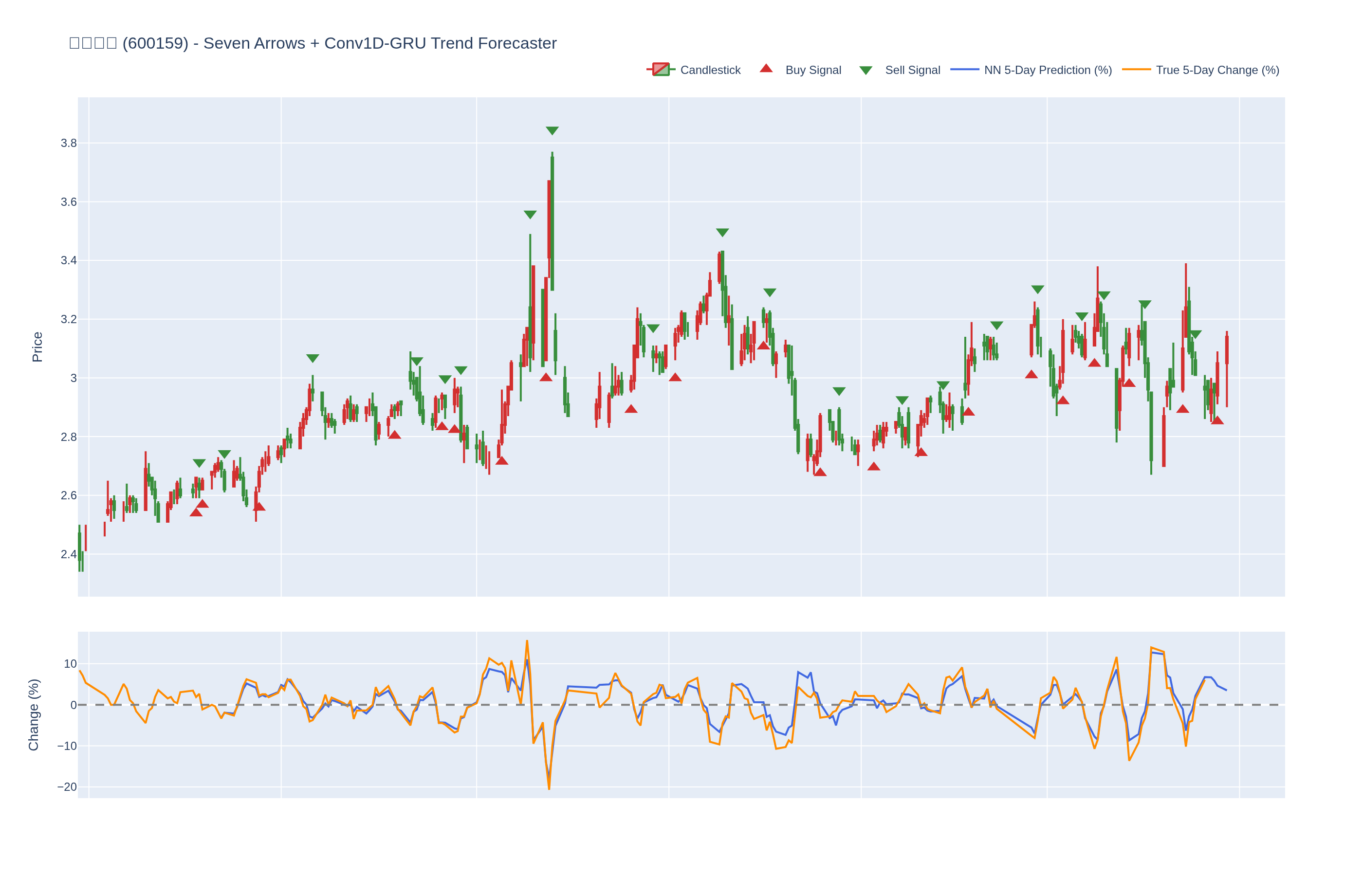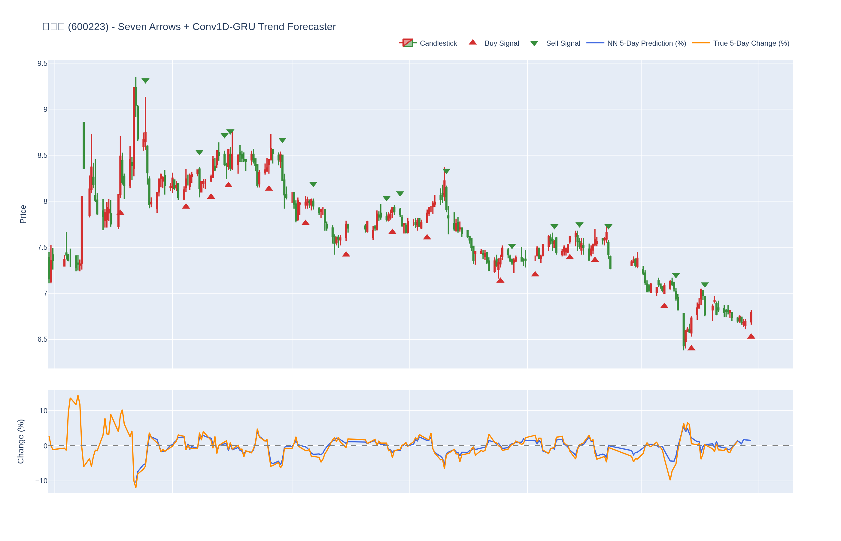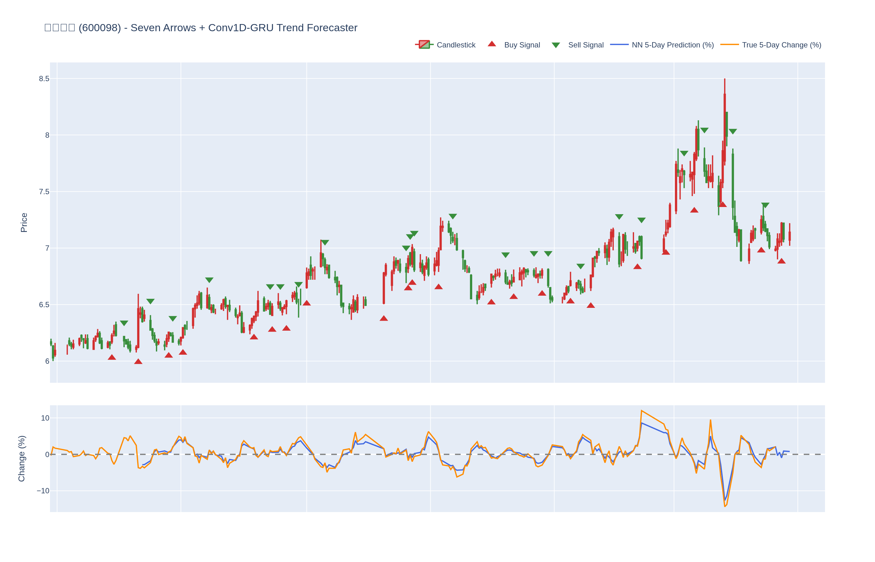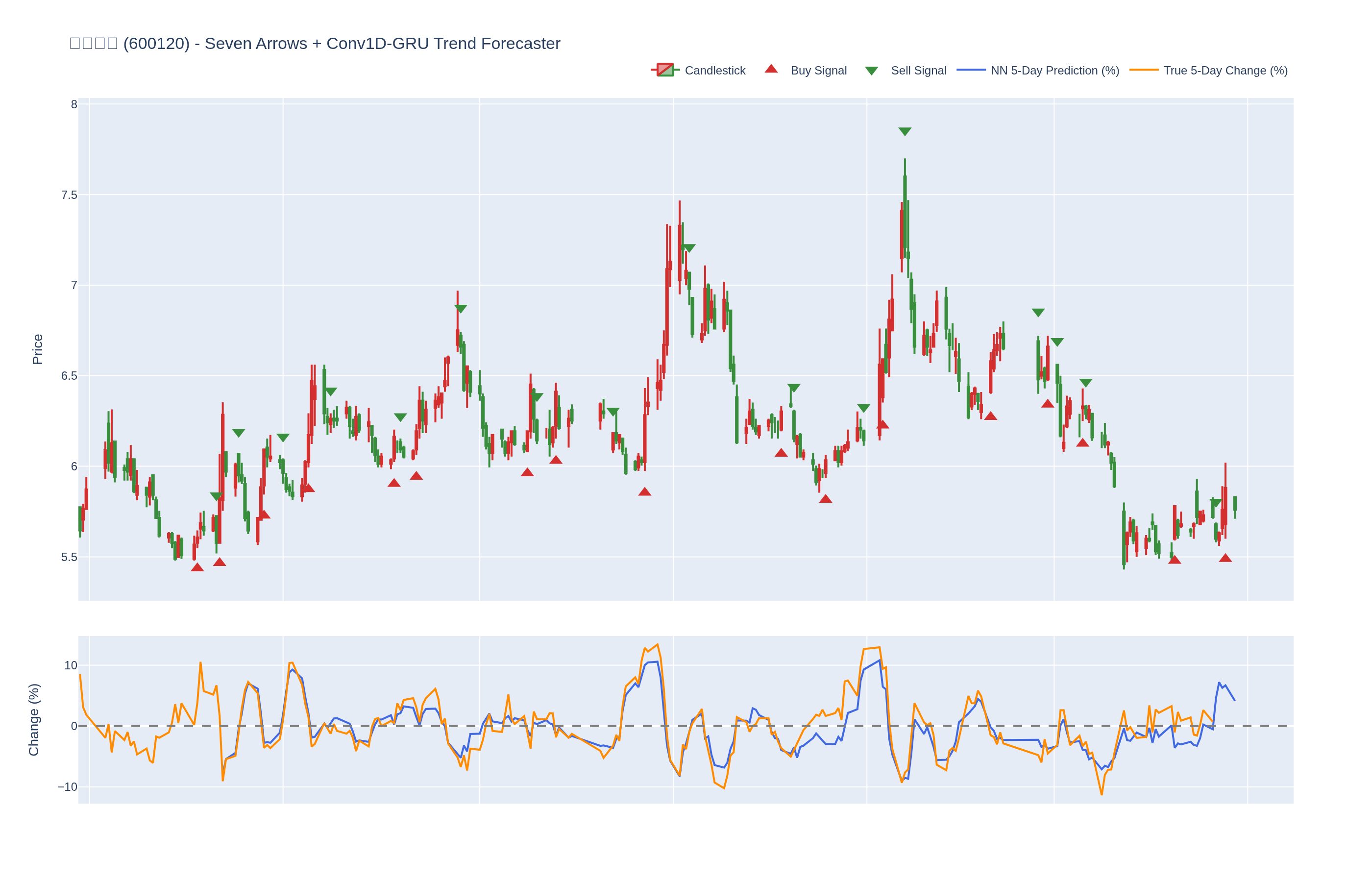 买入 (Buy): ≥6 向上箭头 且 NN 预测未来价格 上涨 (>0%)