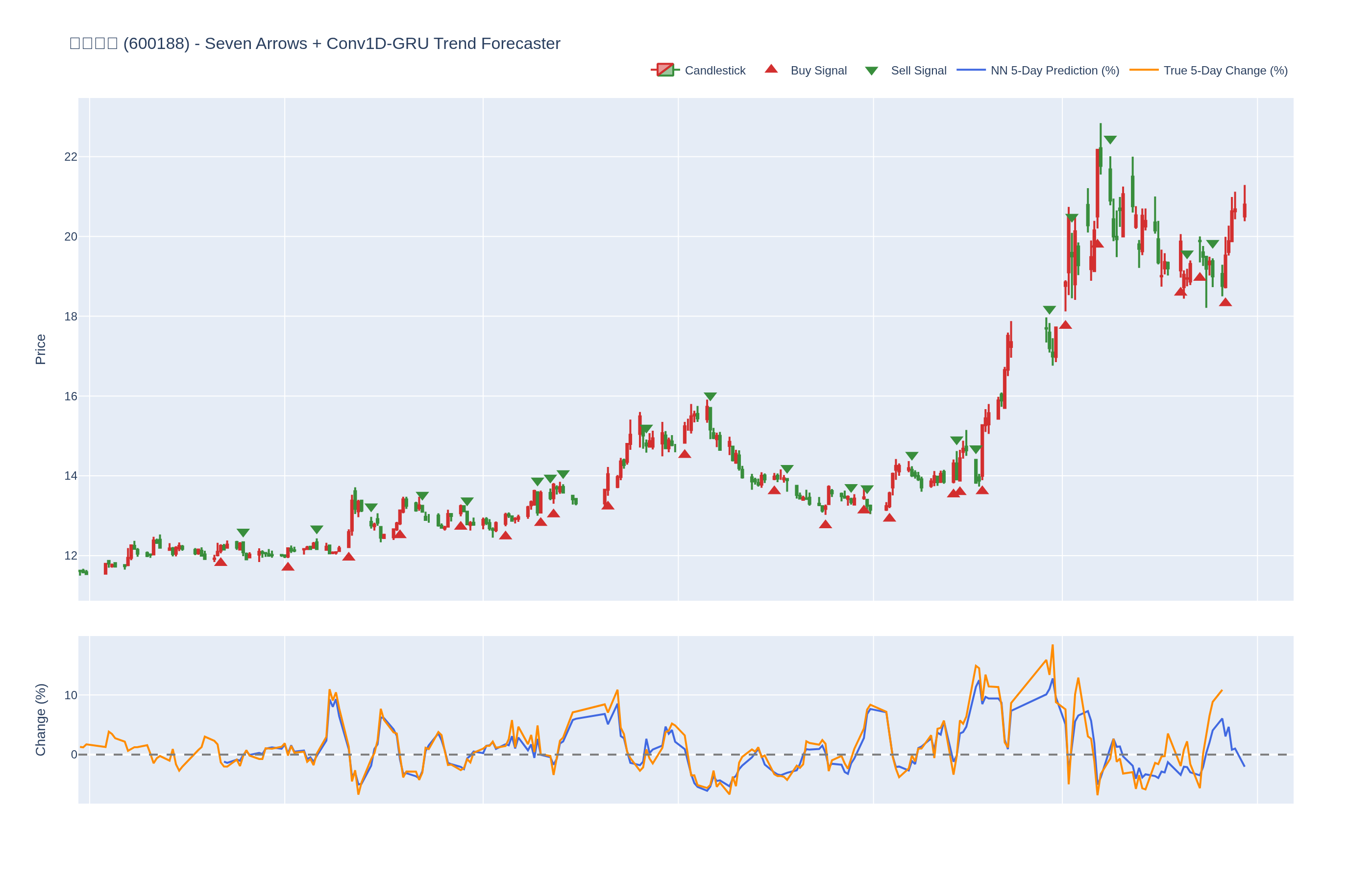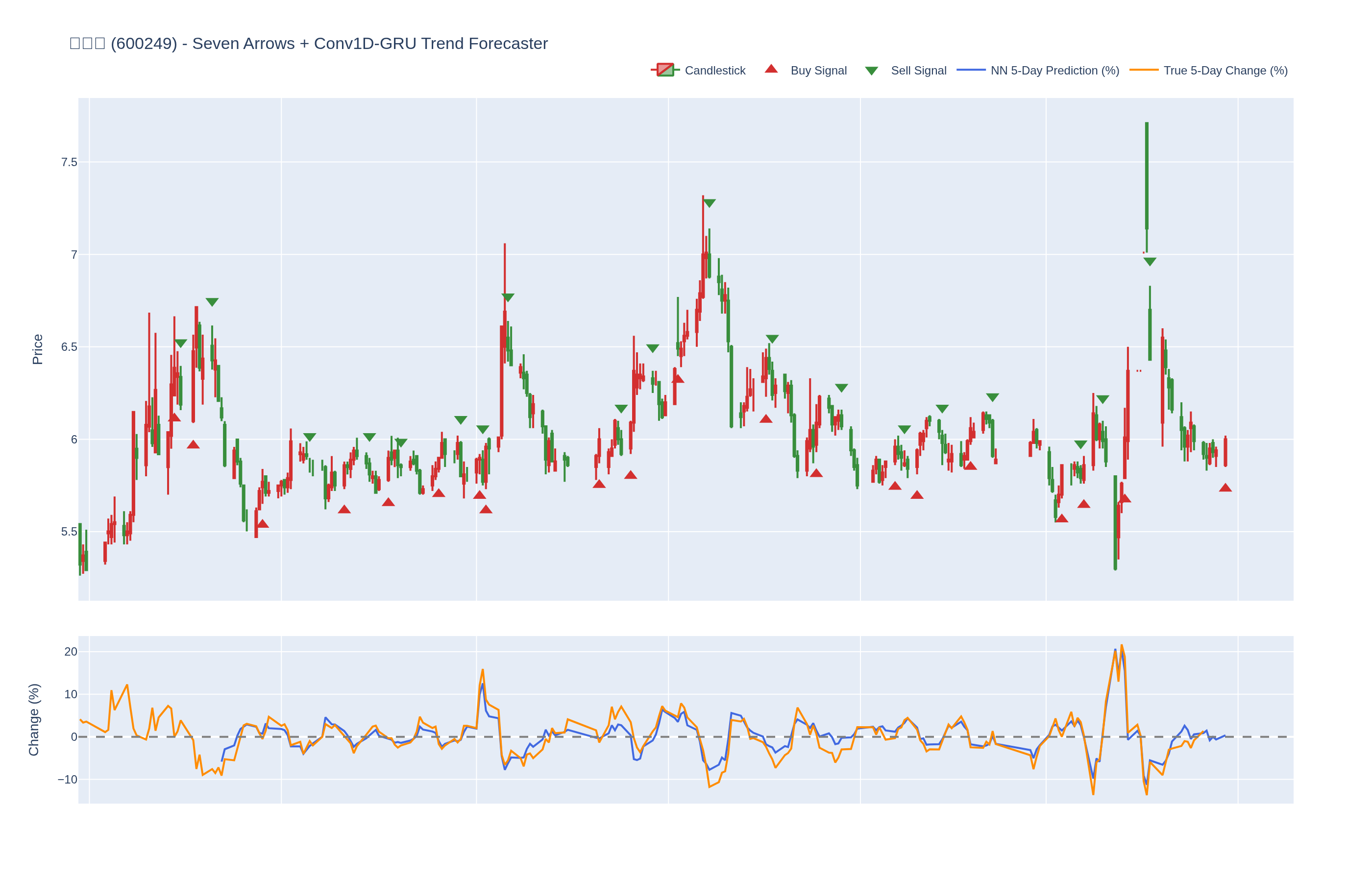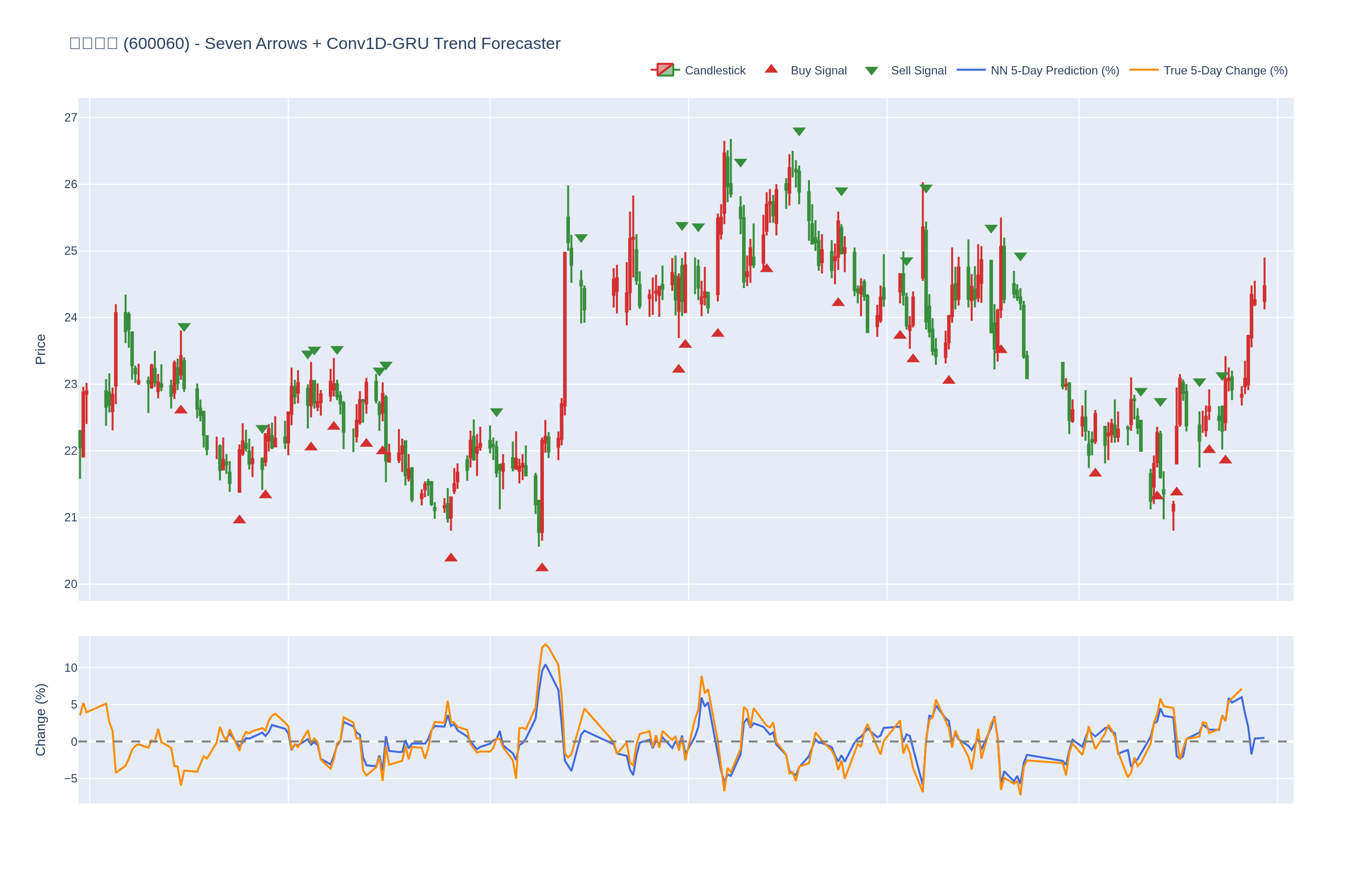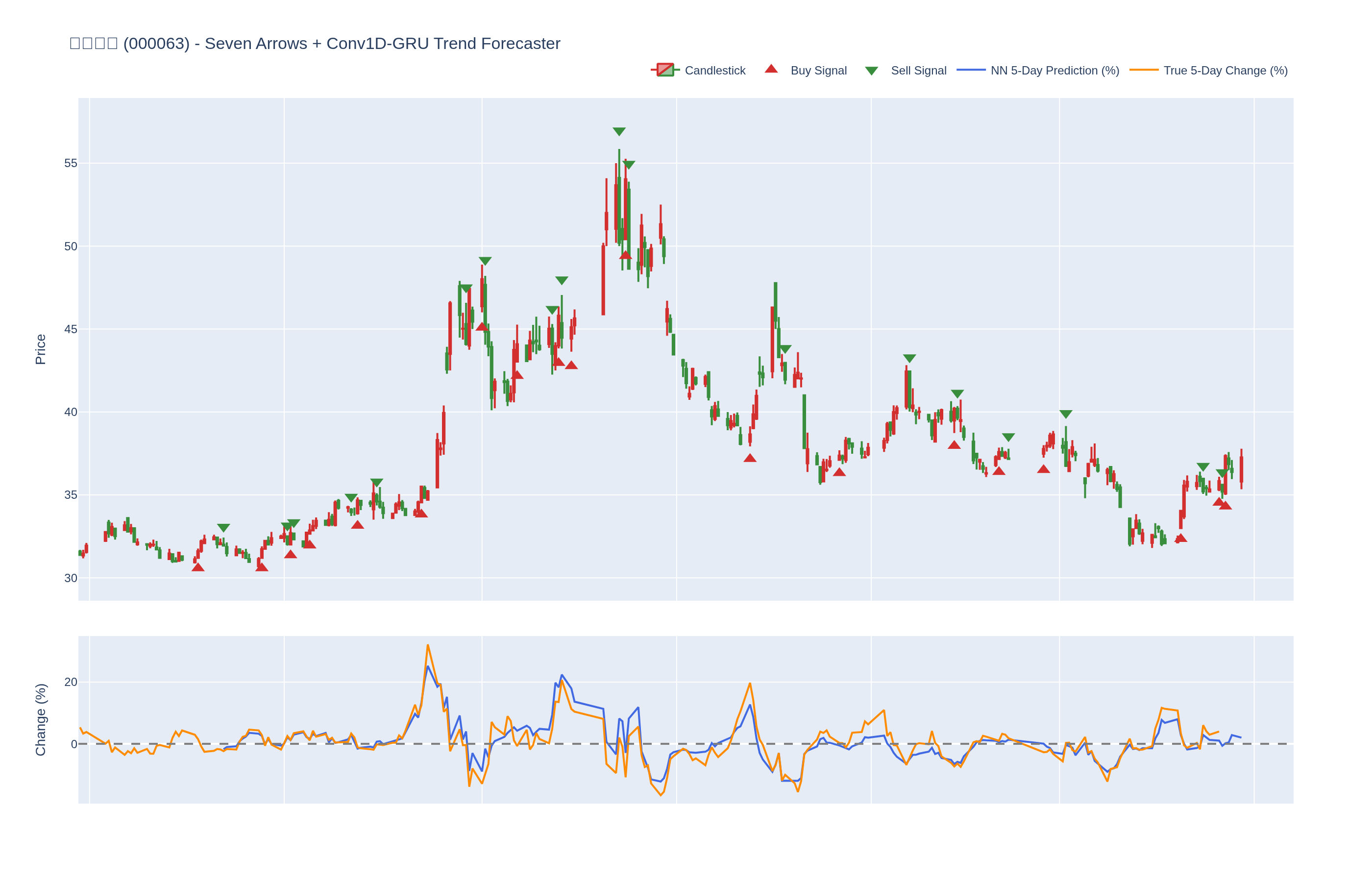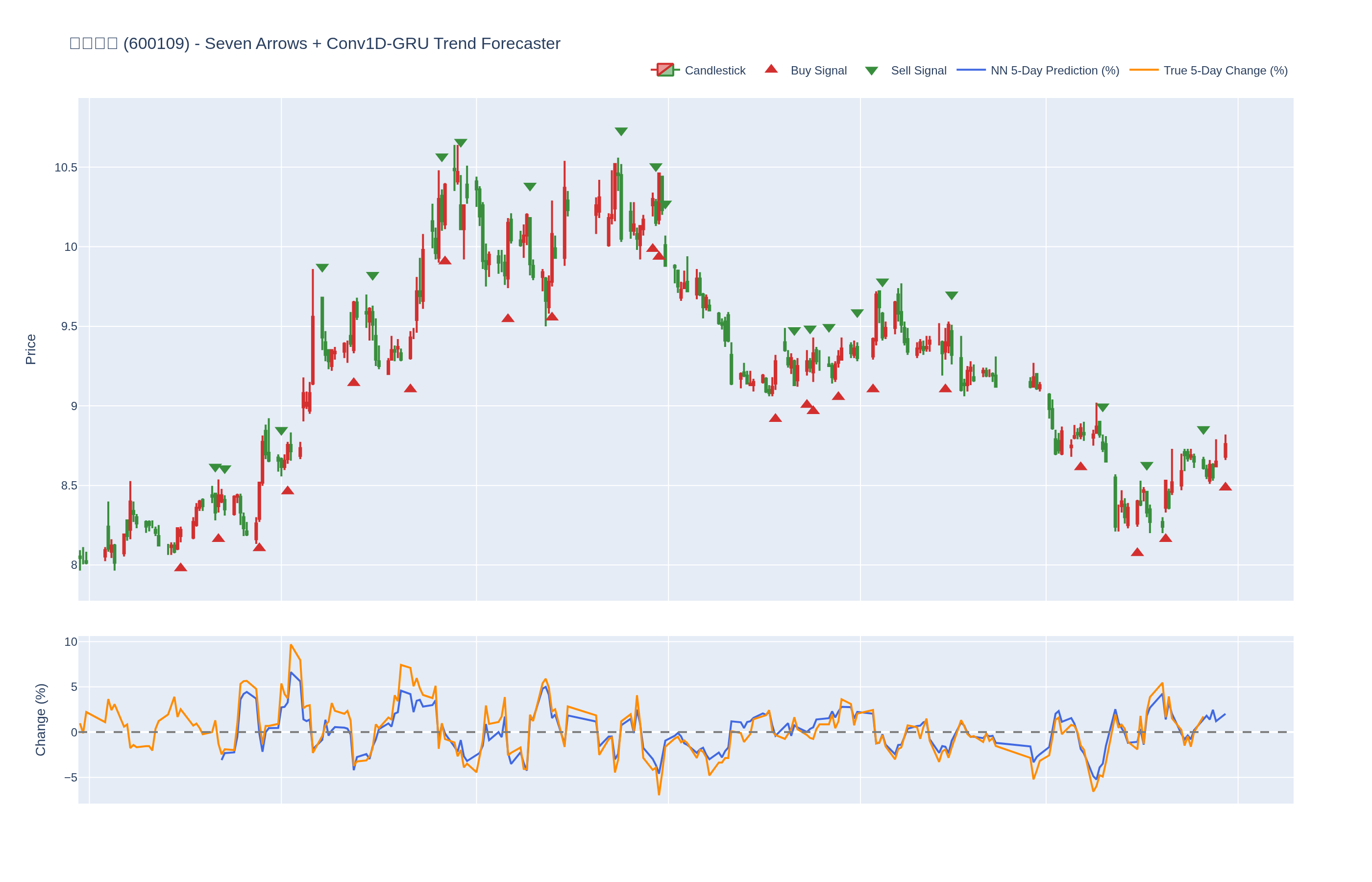 买入 (Buy): ≥6 向上箭头 且 NN 预测未来价格 上涨 (>0%)
