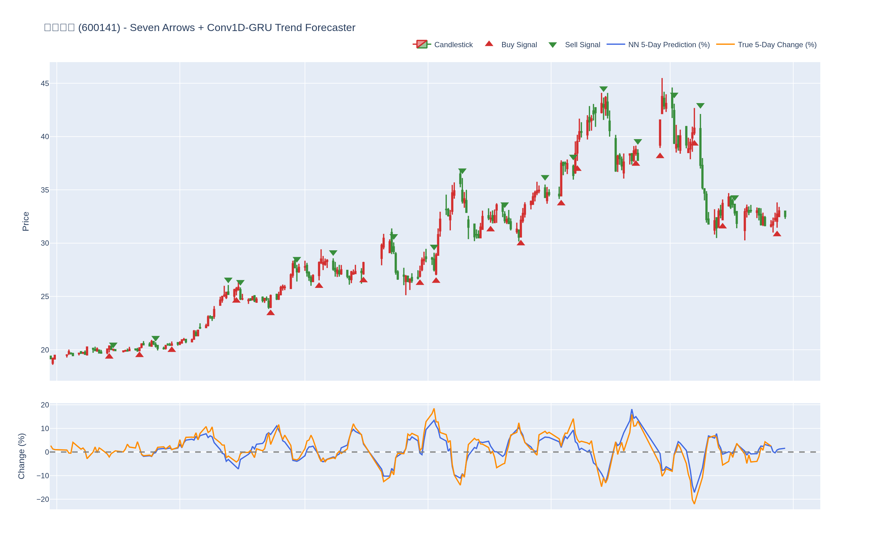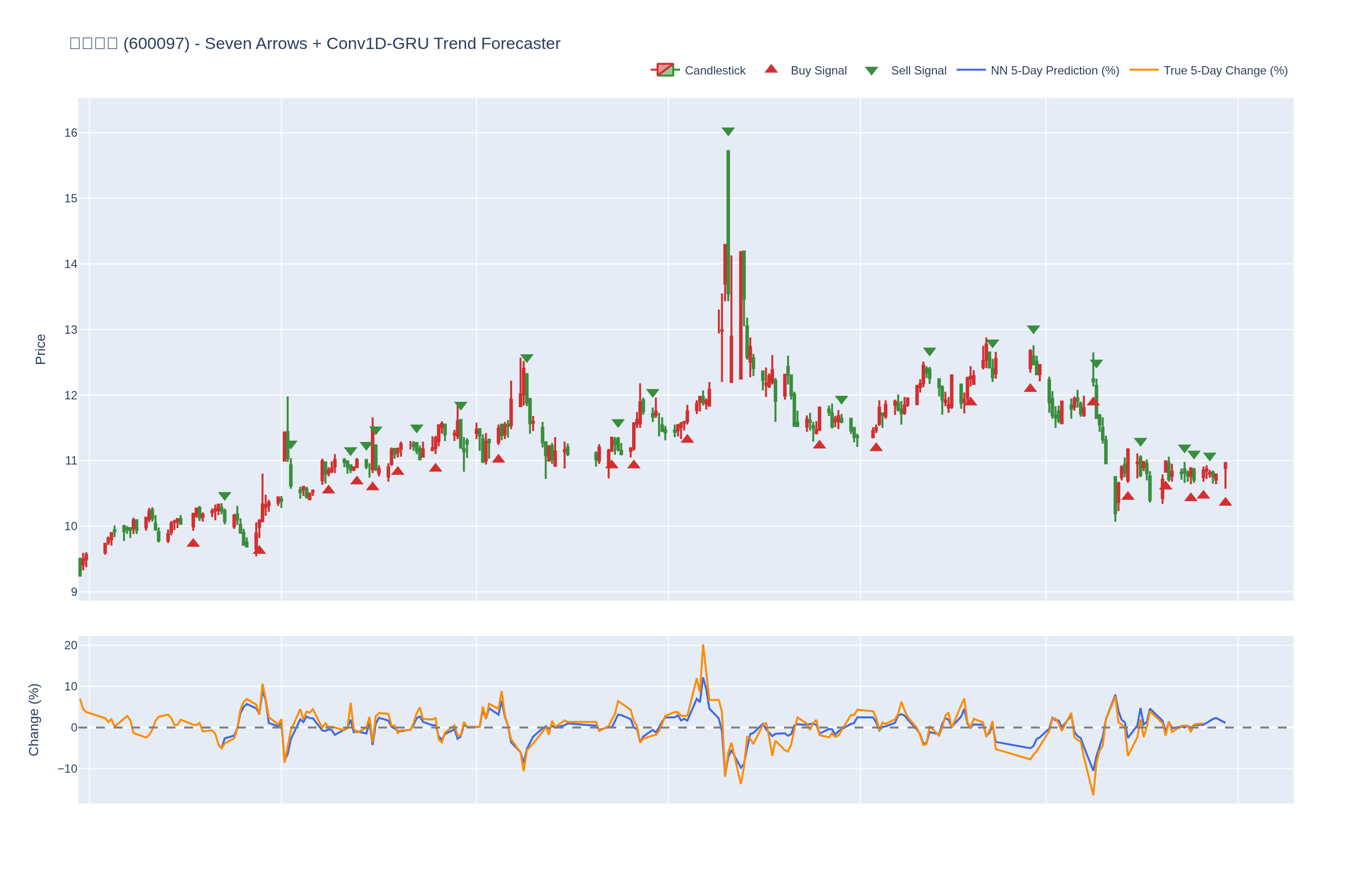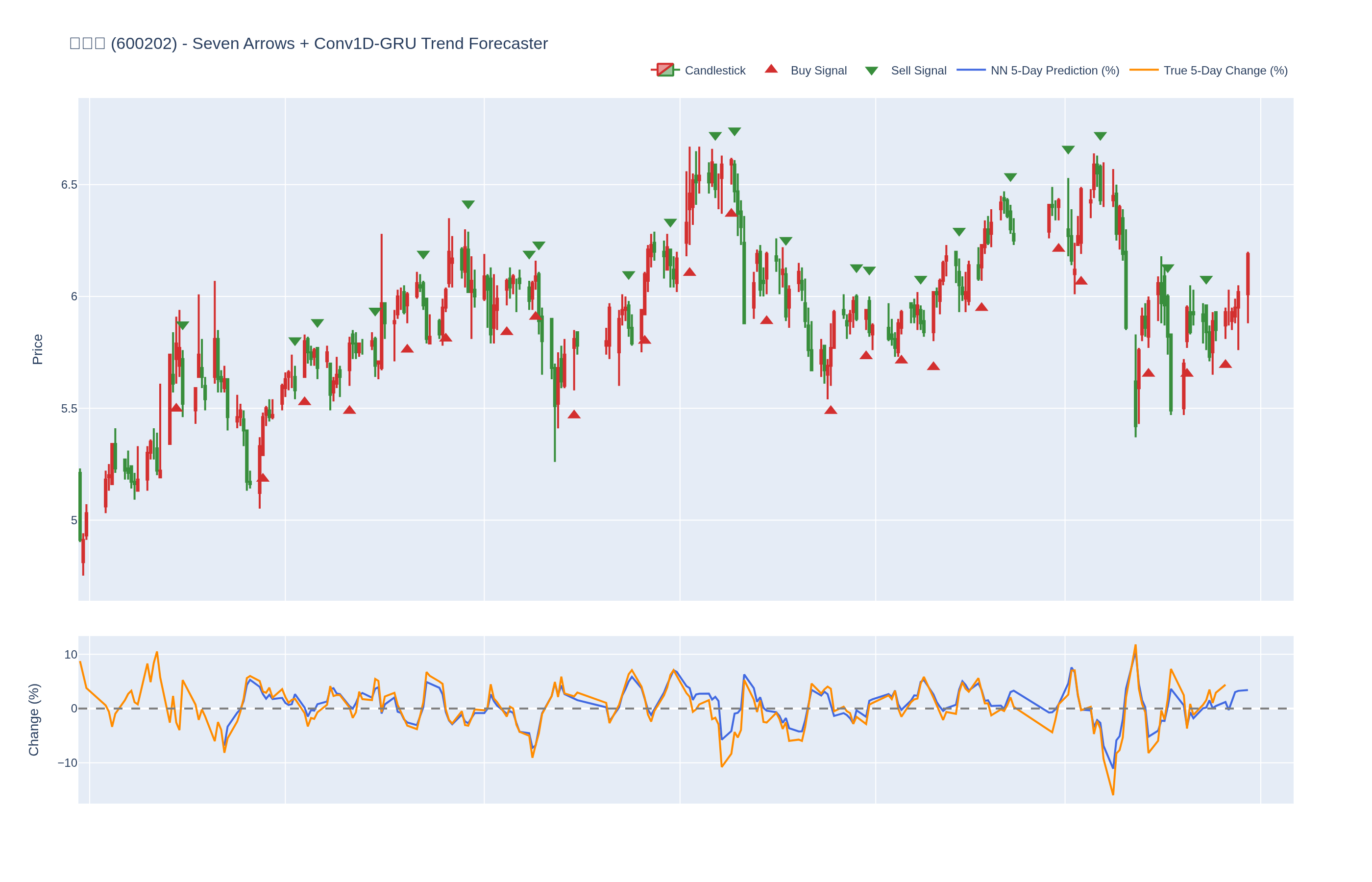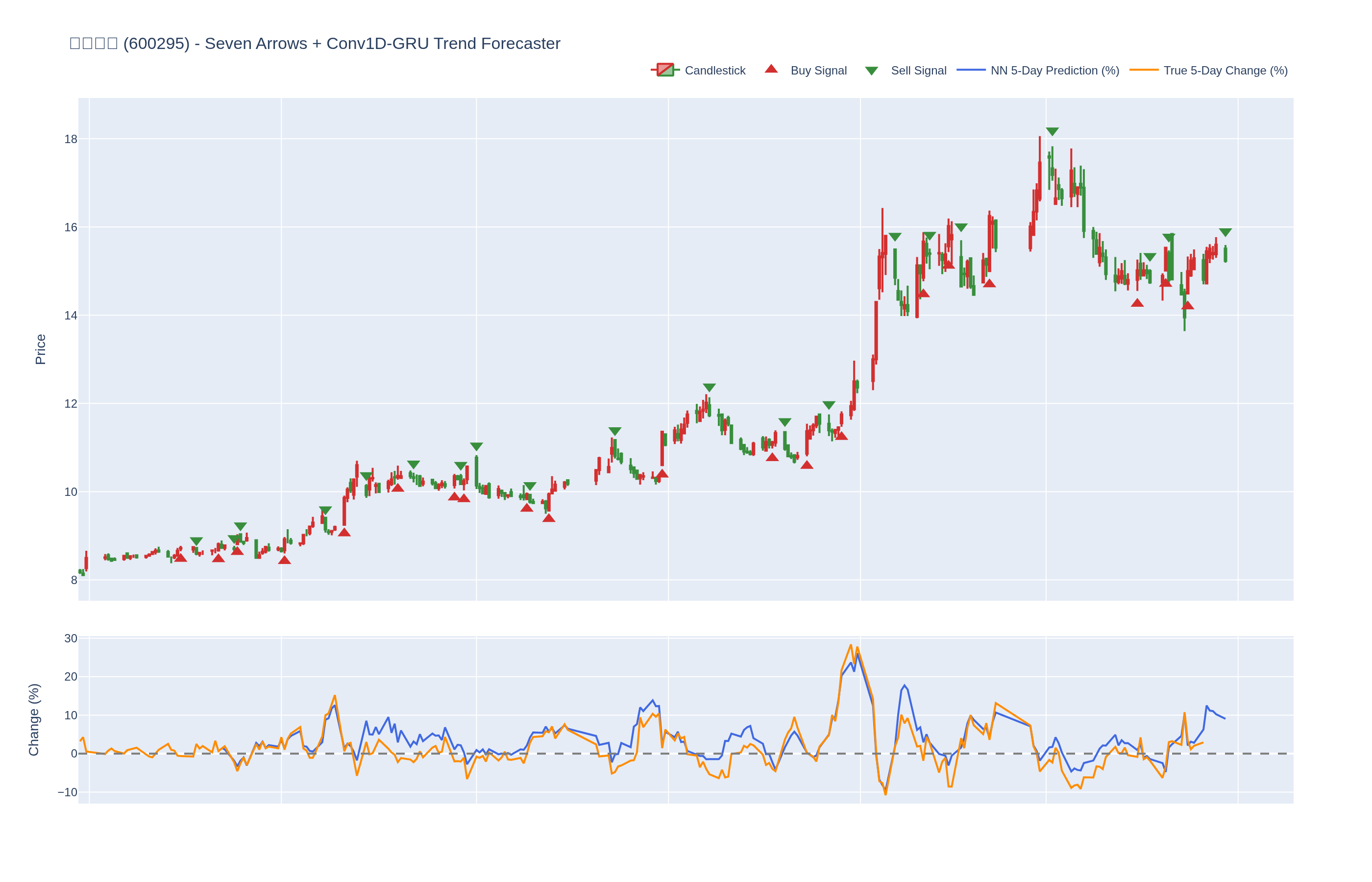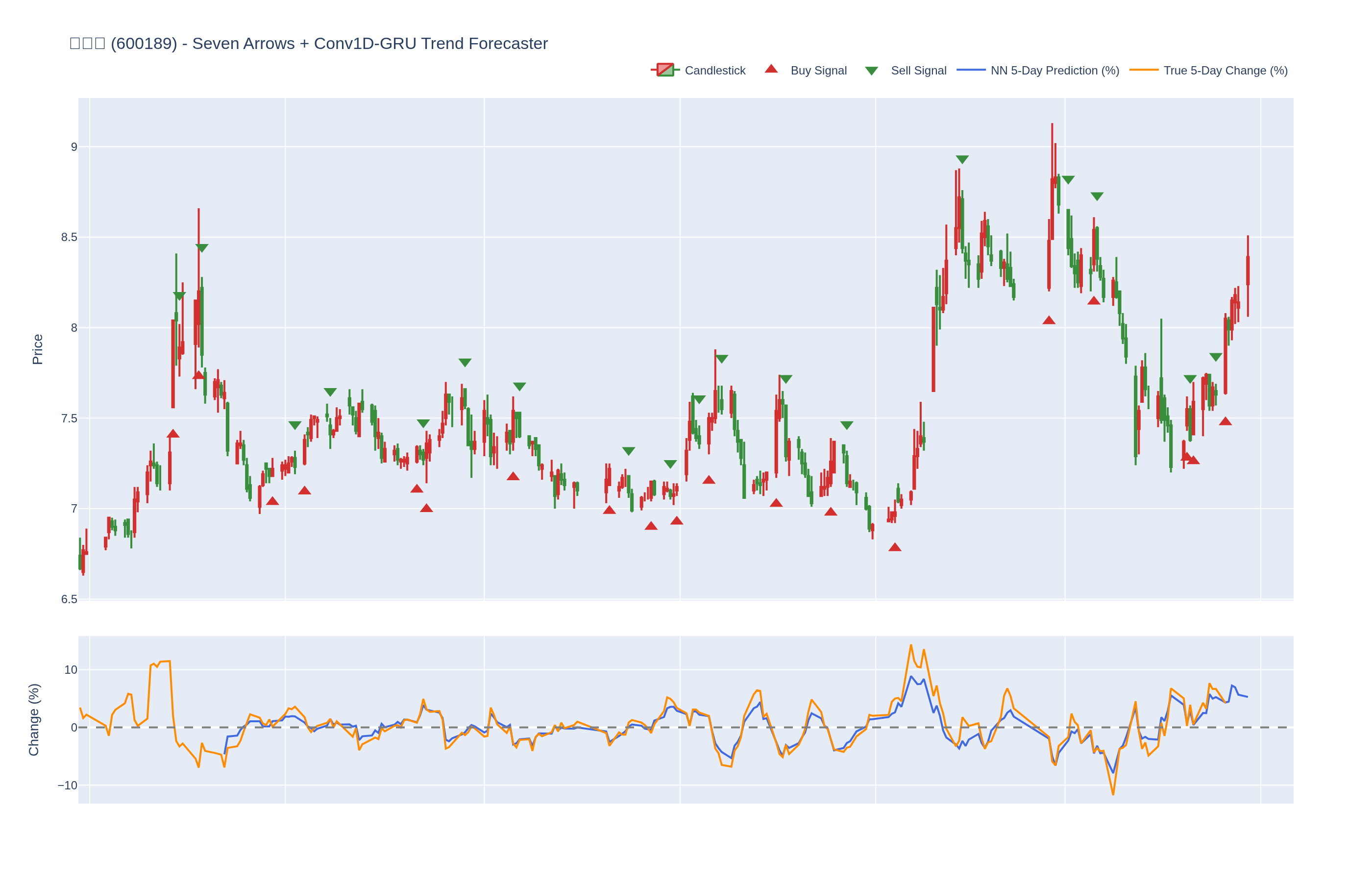 买入 (Buy): ≥6 向上箭头 且 NN 预测未来价格 上涨 (>0%)