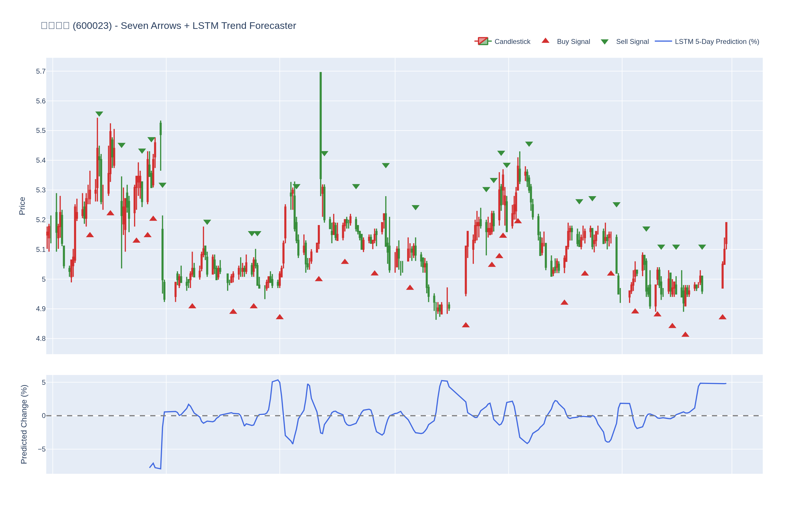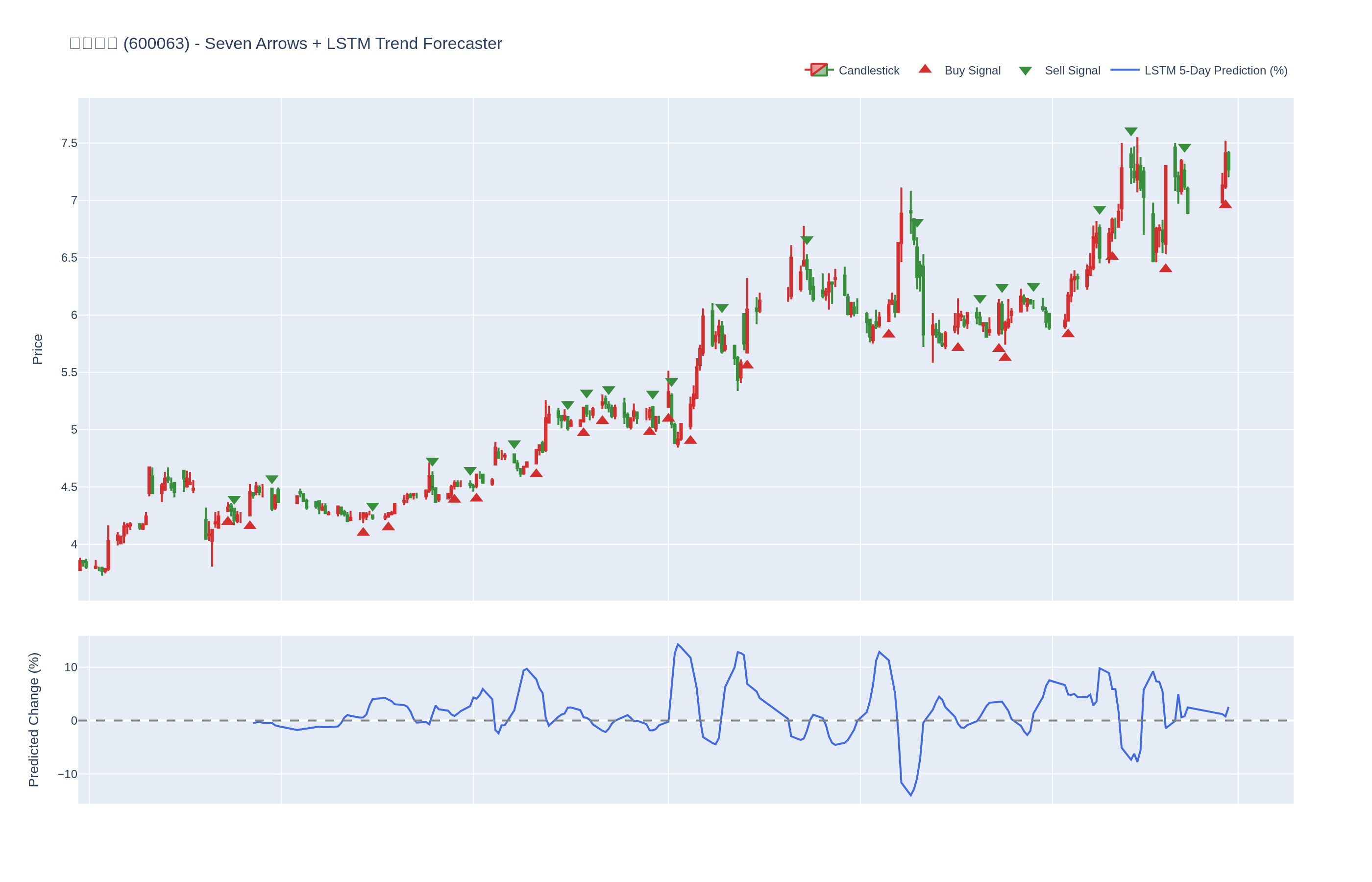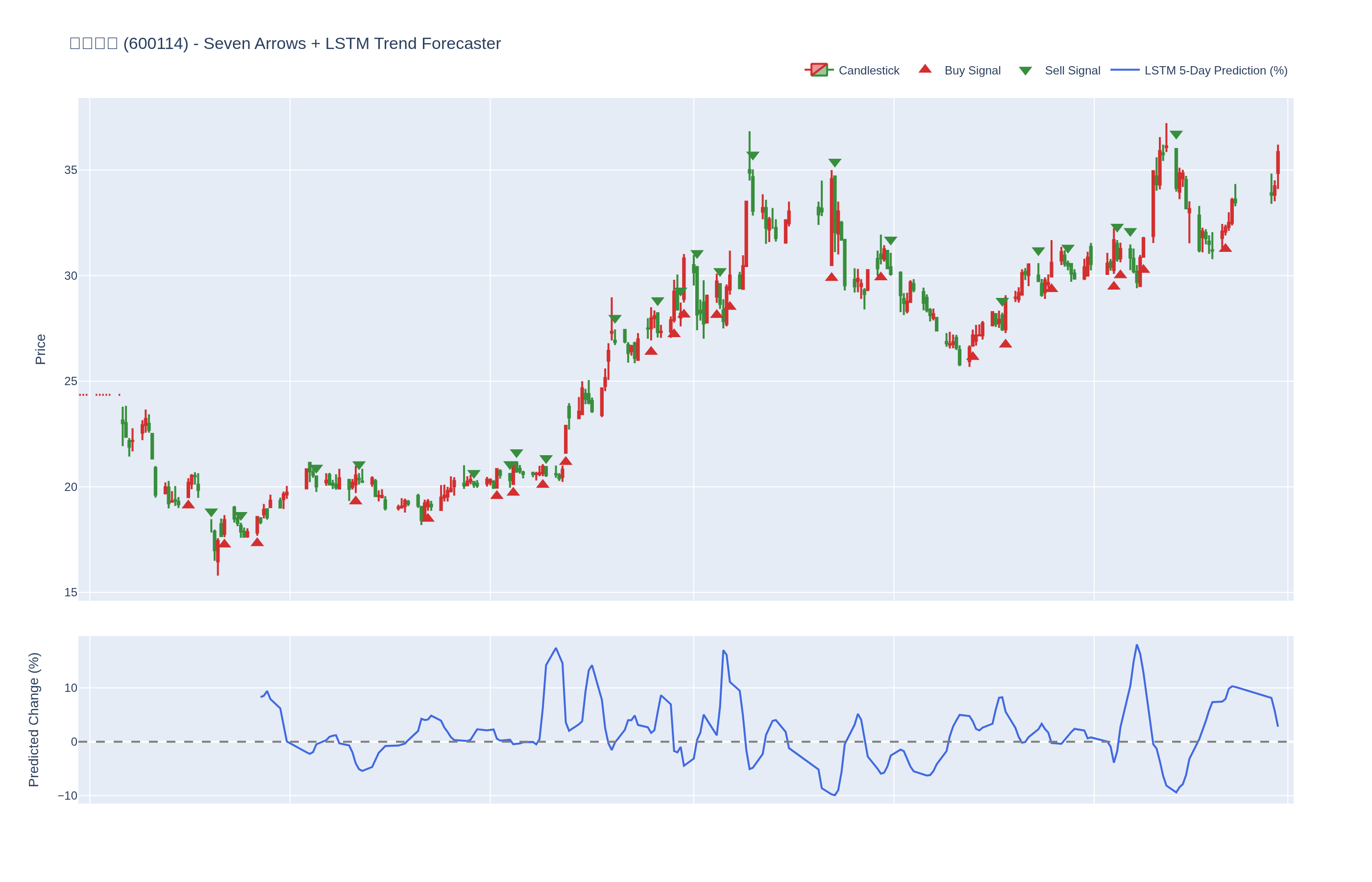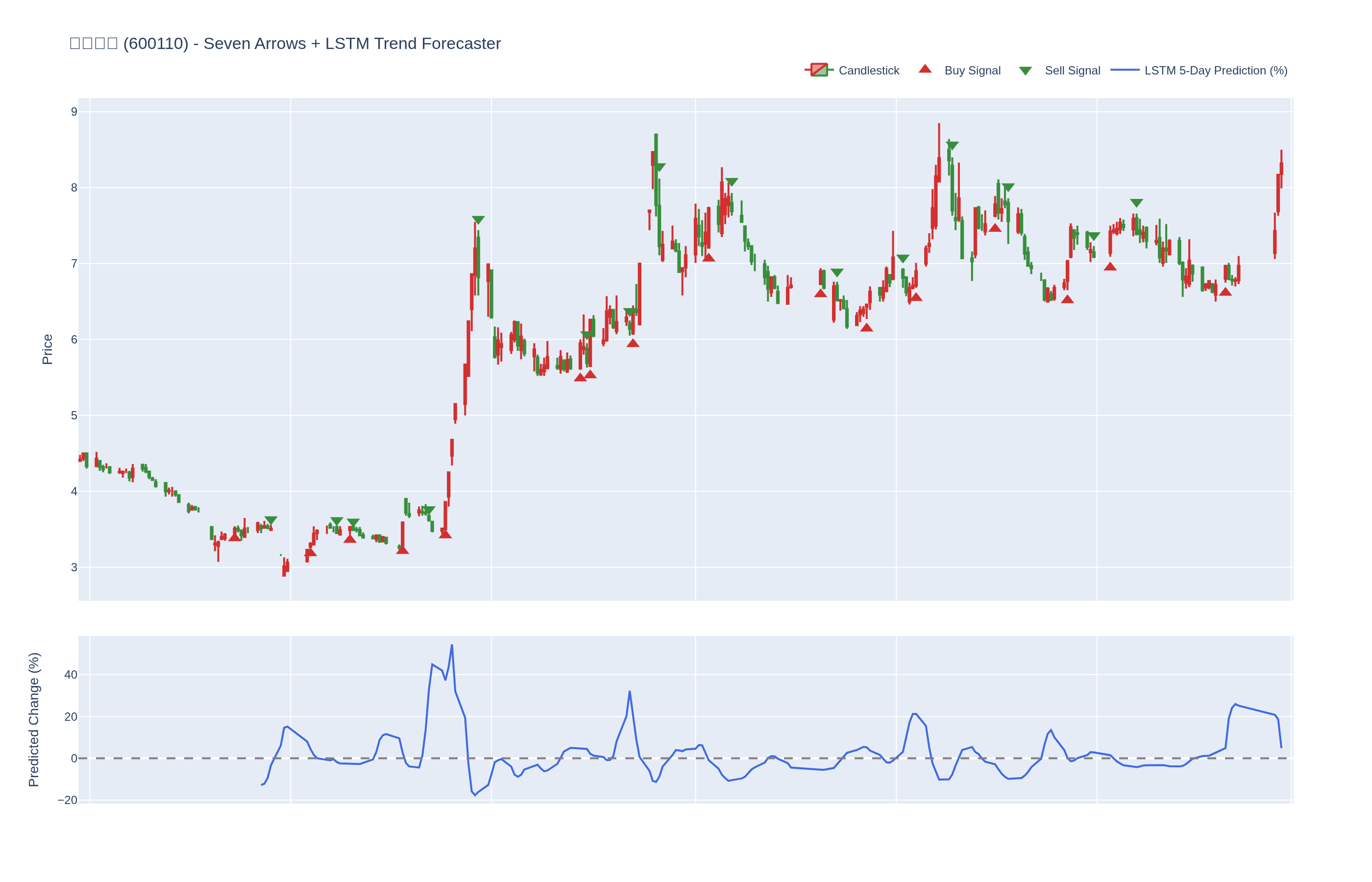 卖出 (Sell): ≤3 向上箭头 或 LSTM 预测未来价格 下跌 (≤0%)