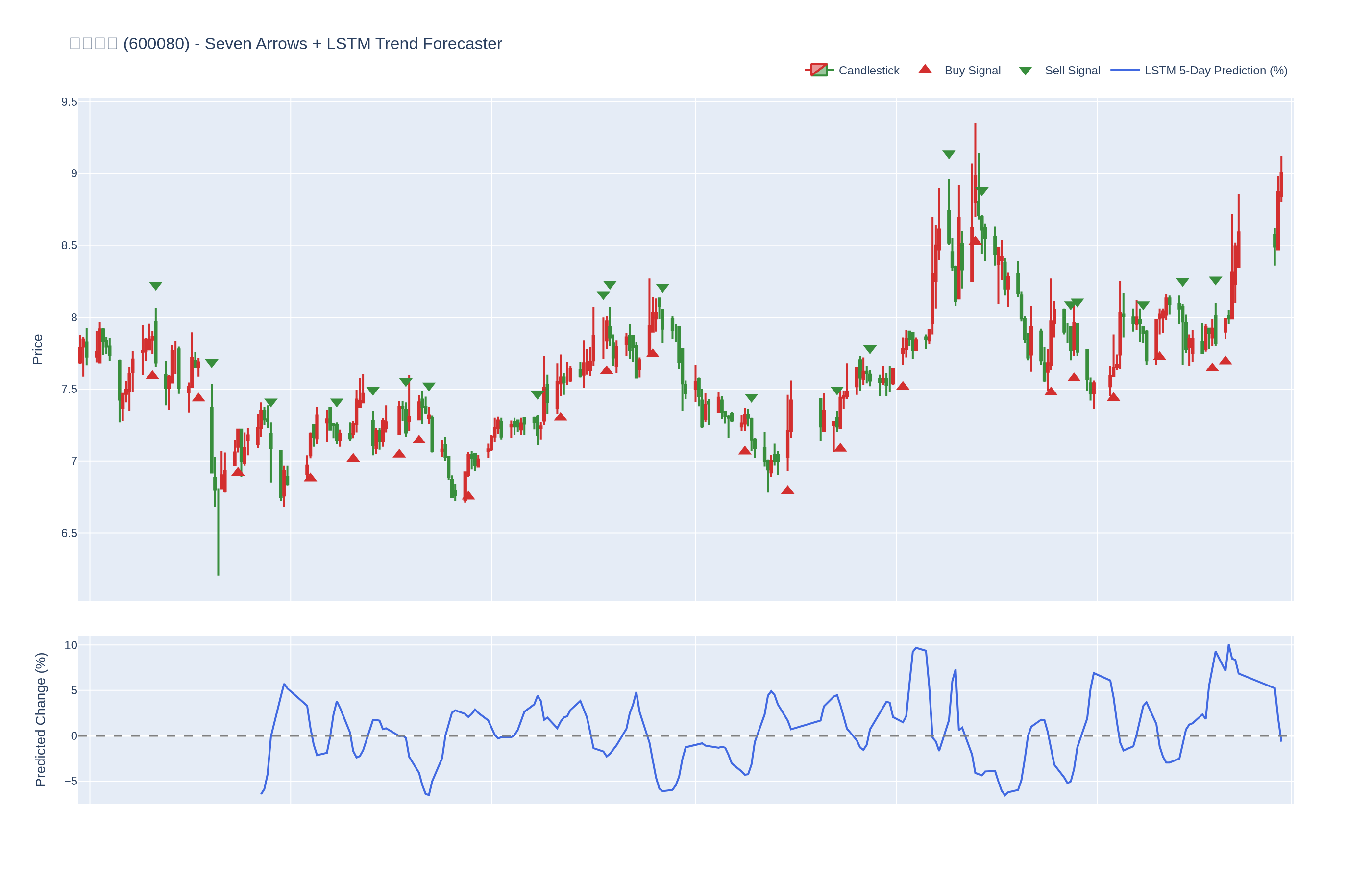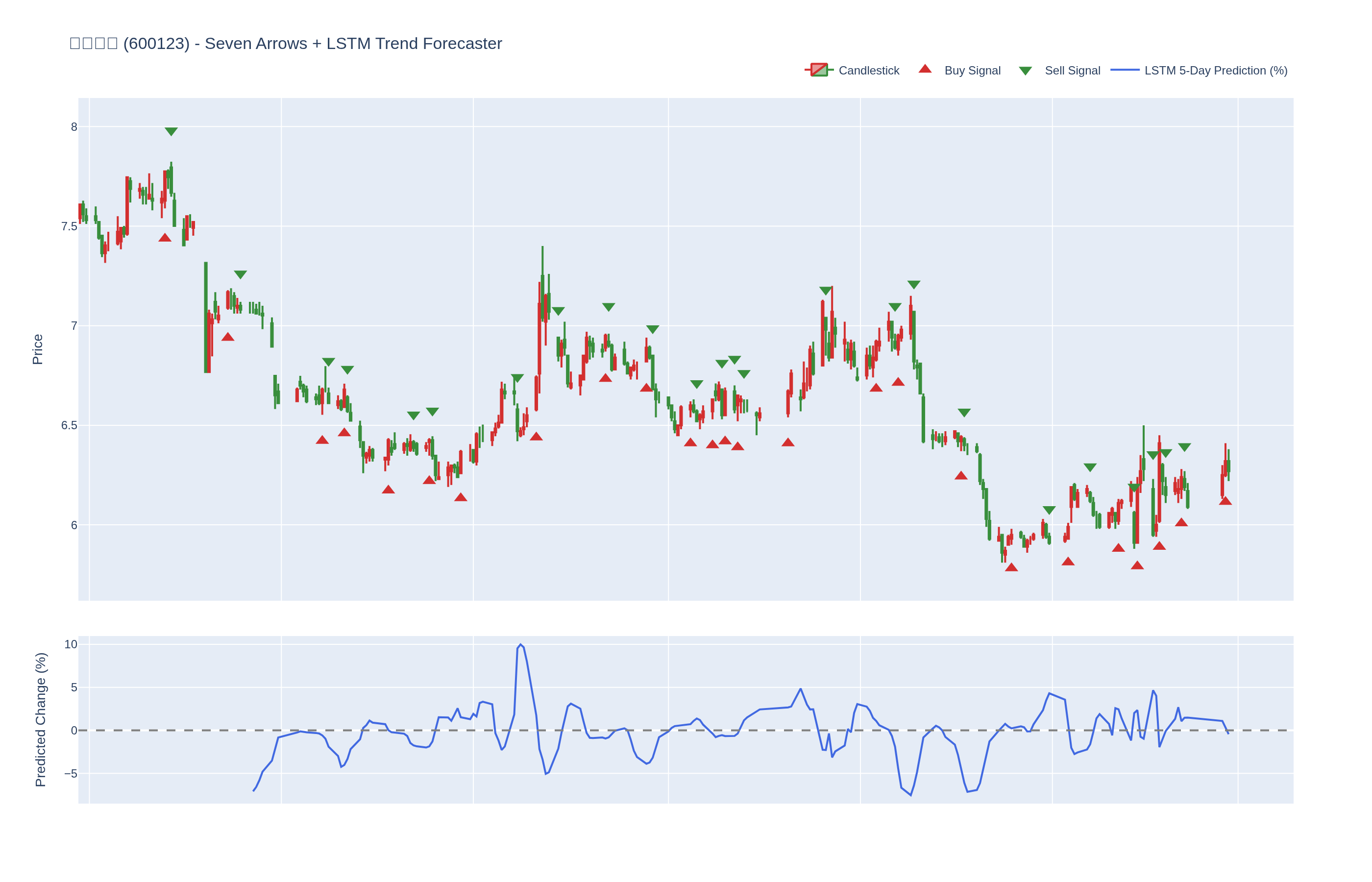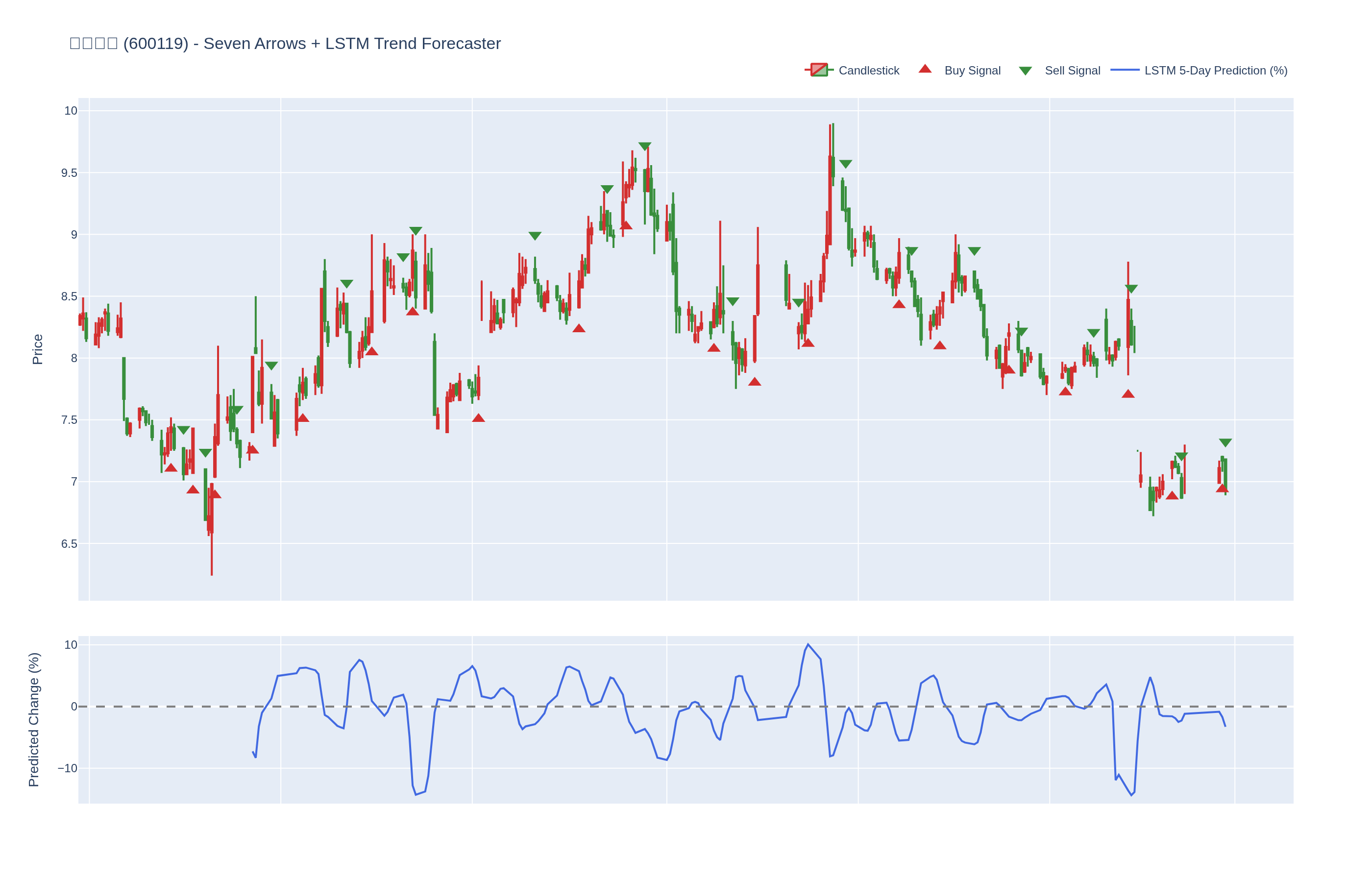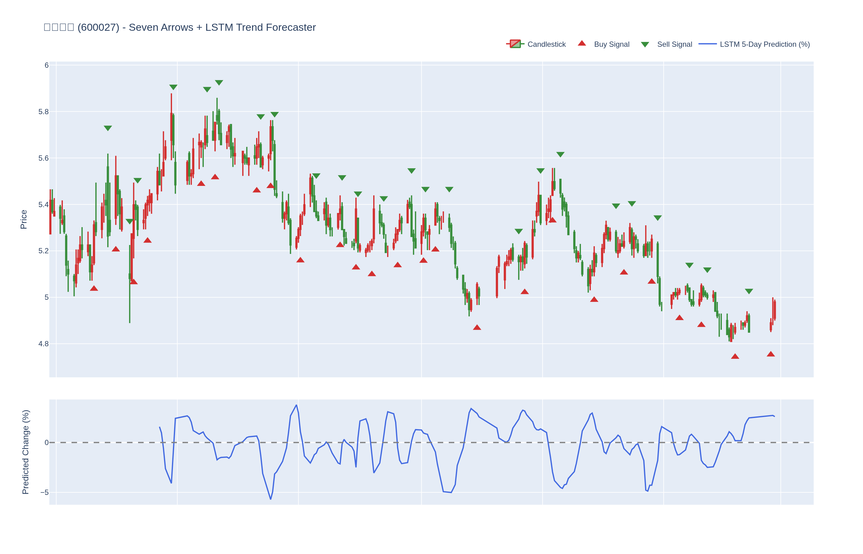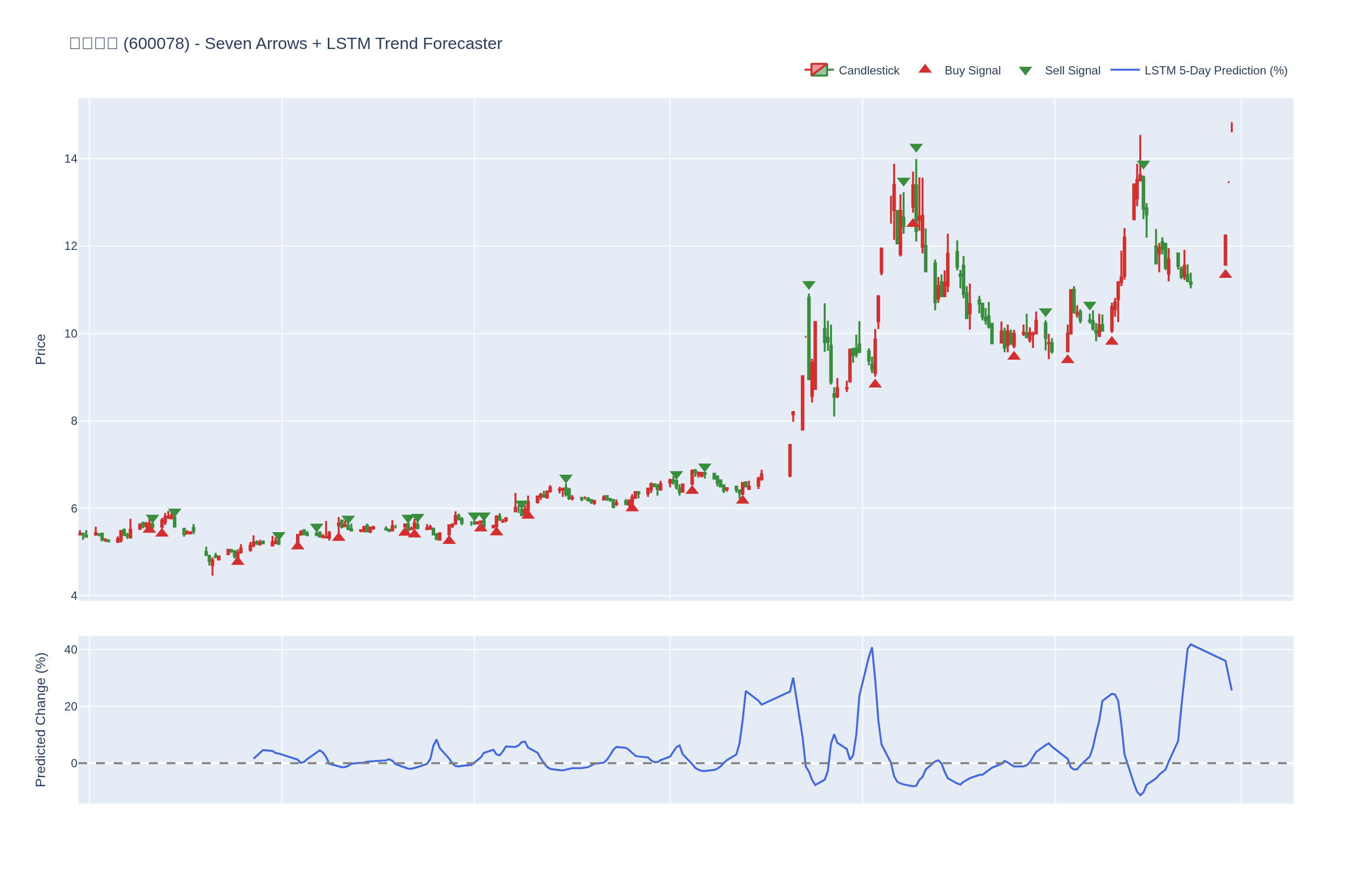 卖出 (Sell): ≤3 向上箭头 或 LSTM 预测未来价格 下跌 (≤0%)