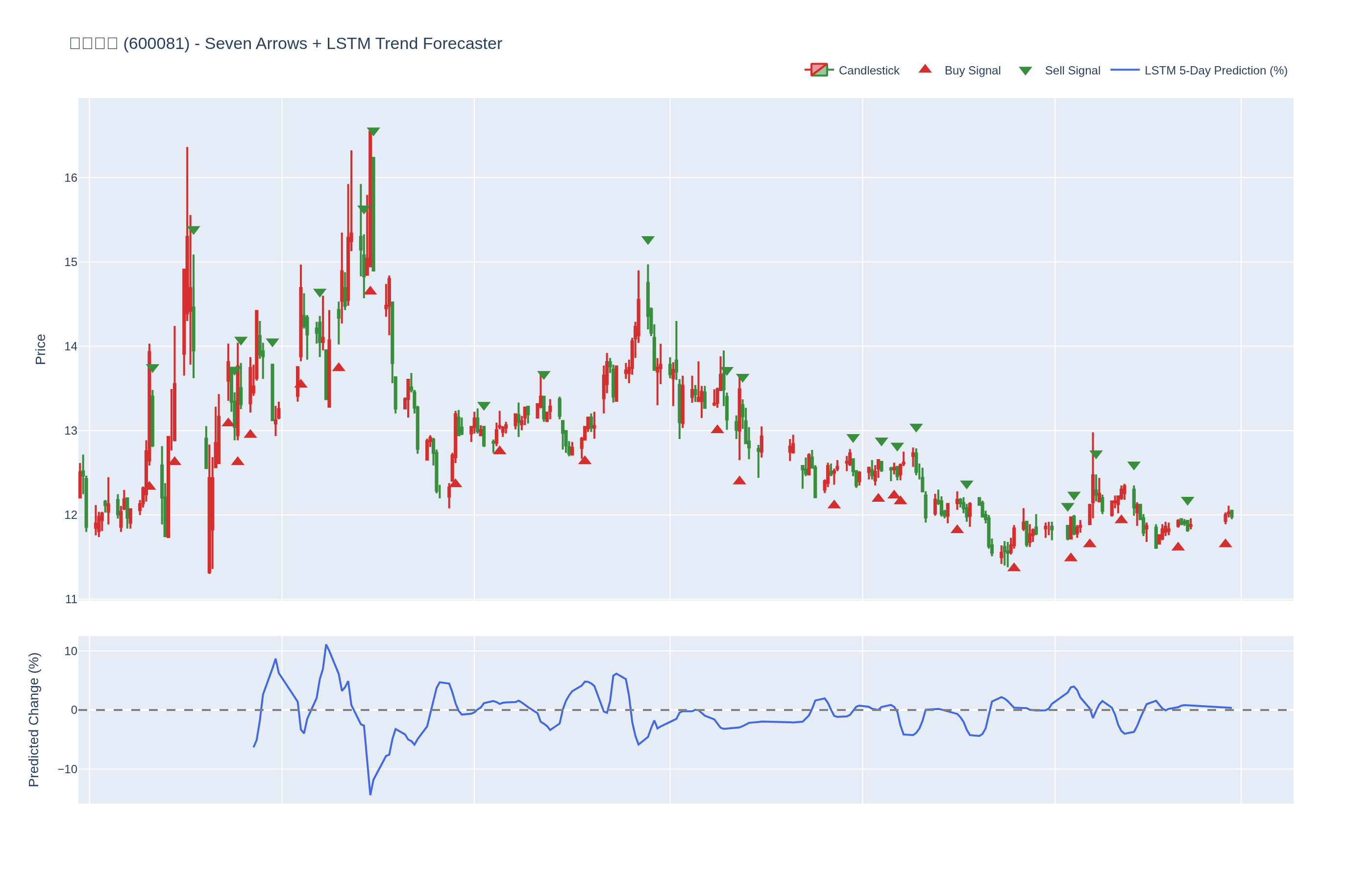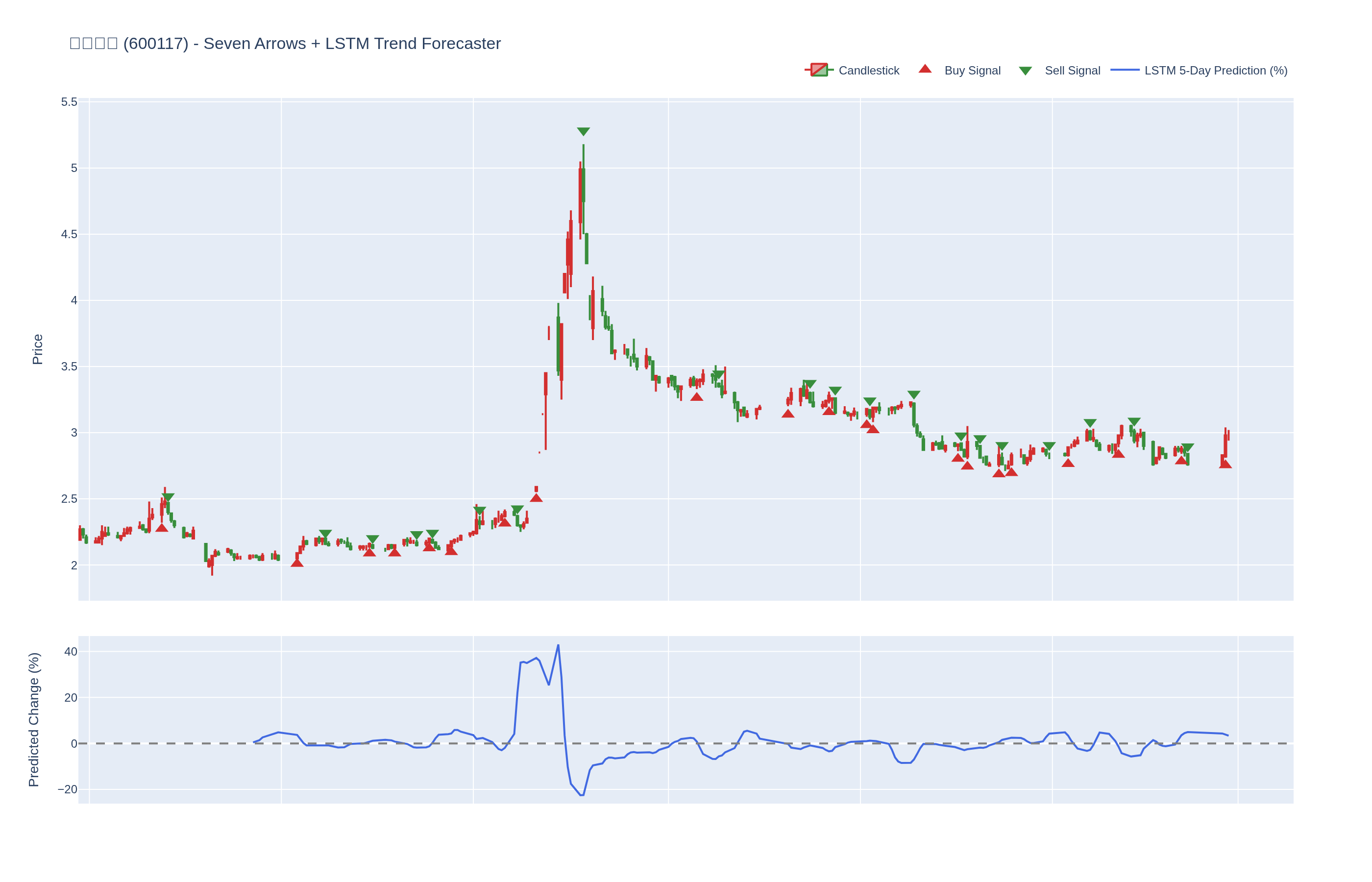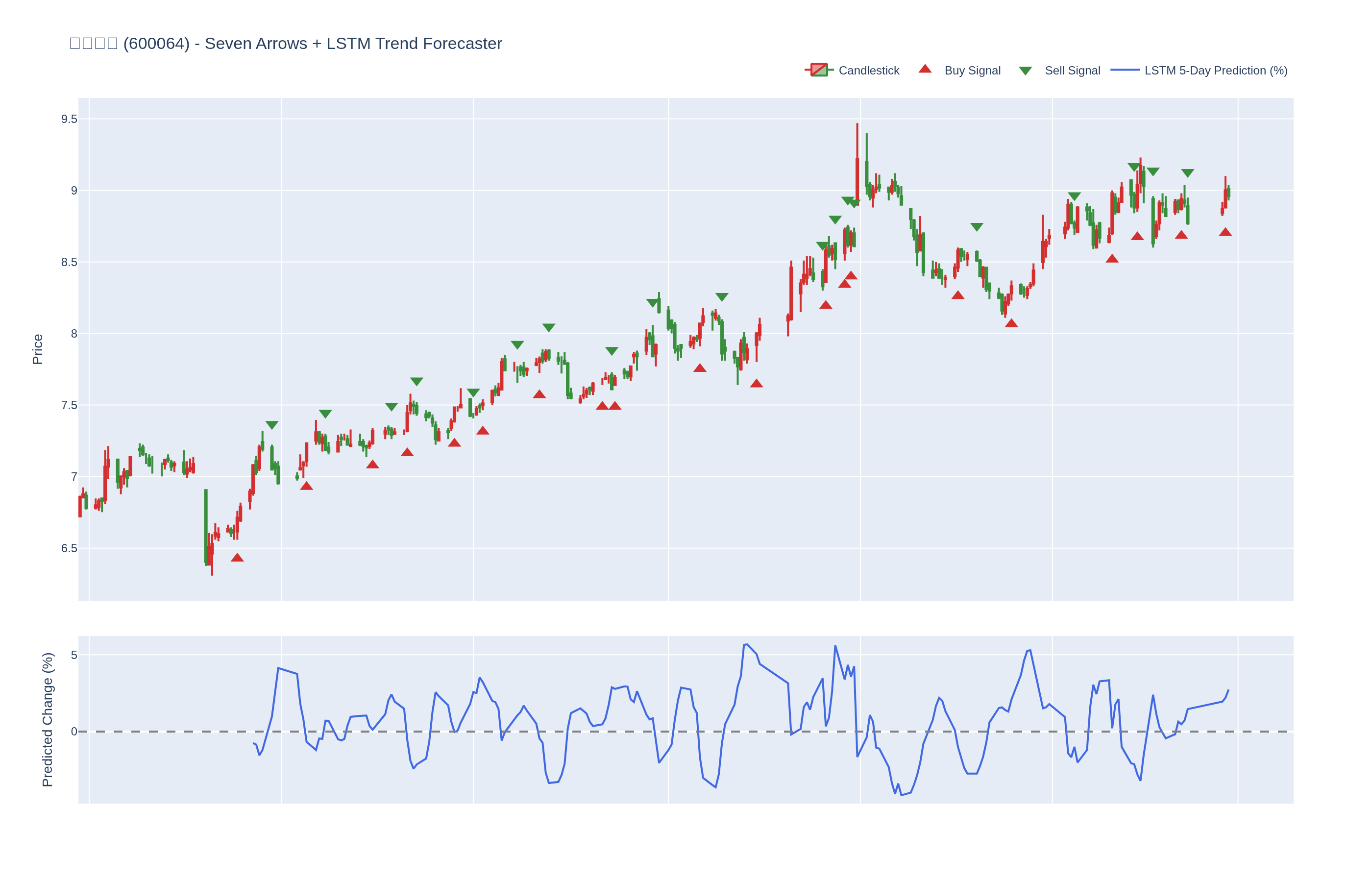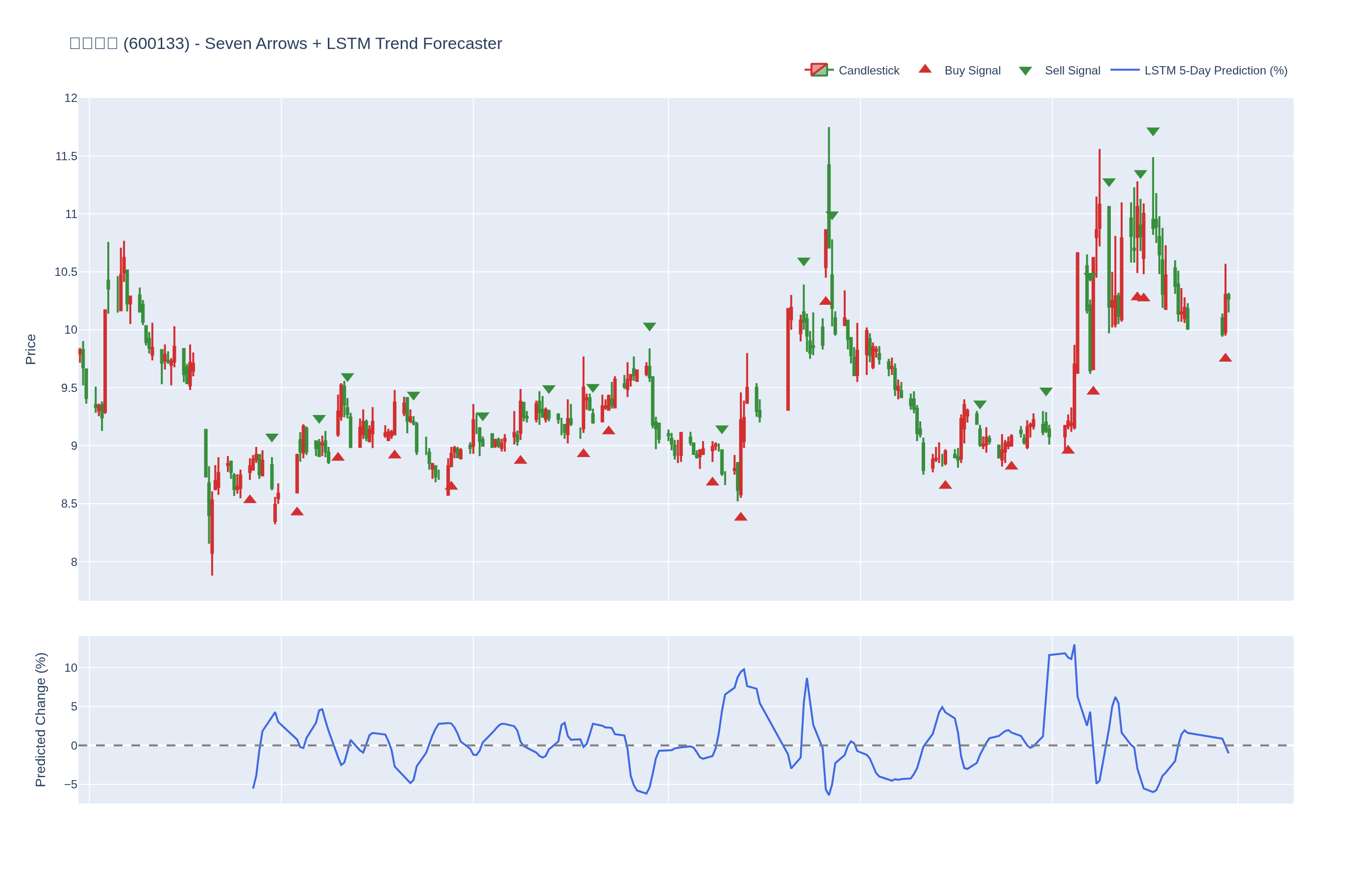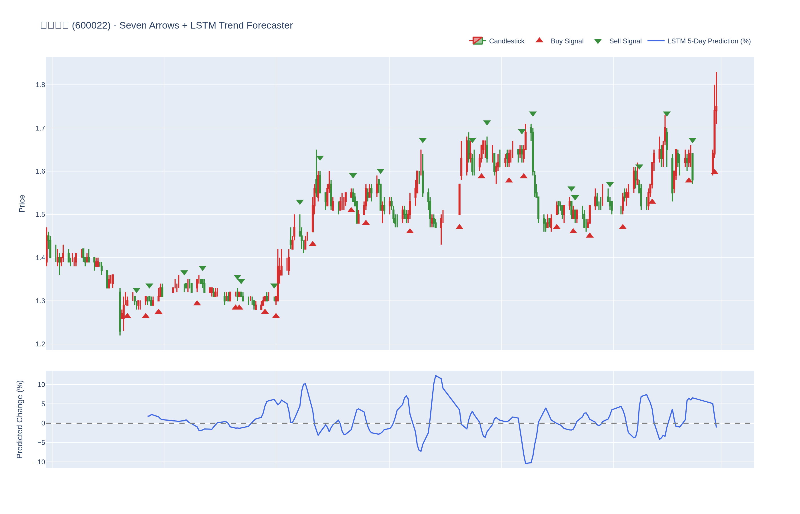 卖出 (Sell): ≤3 向上箭头 或 LSTM 预测未来价格 下跌 (≤0%)